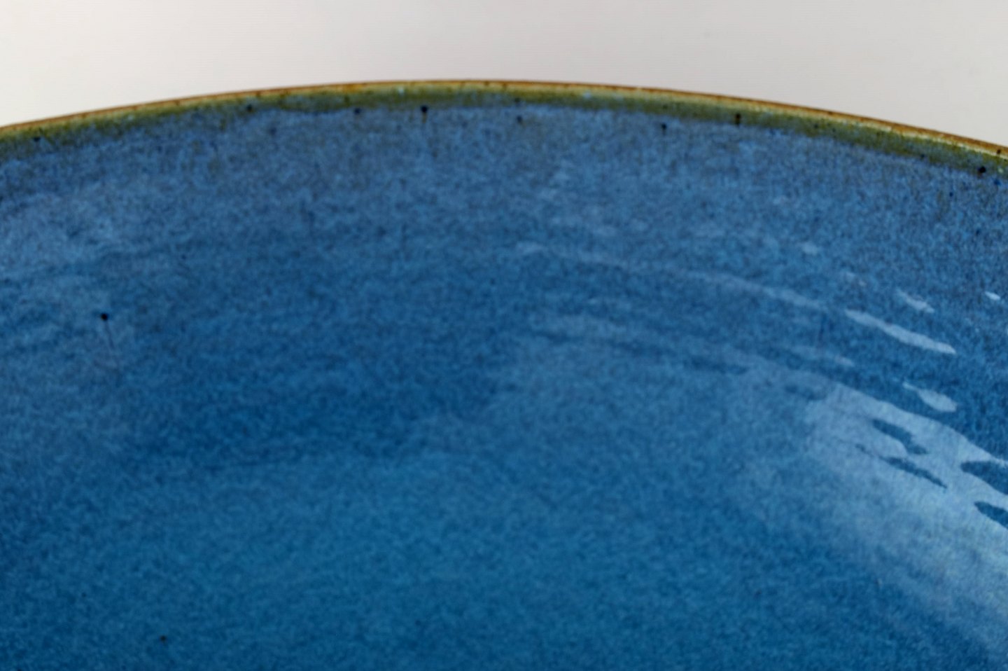 Helle Allpass (1932-2000). Kæmpestor gulvvase af glaseret stentøj med smuk turkis glasur indvendig.