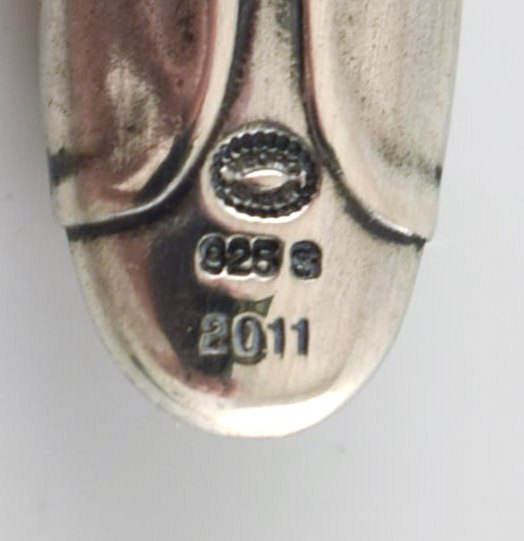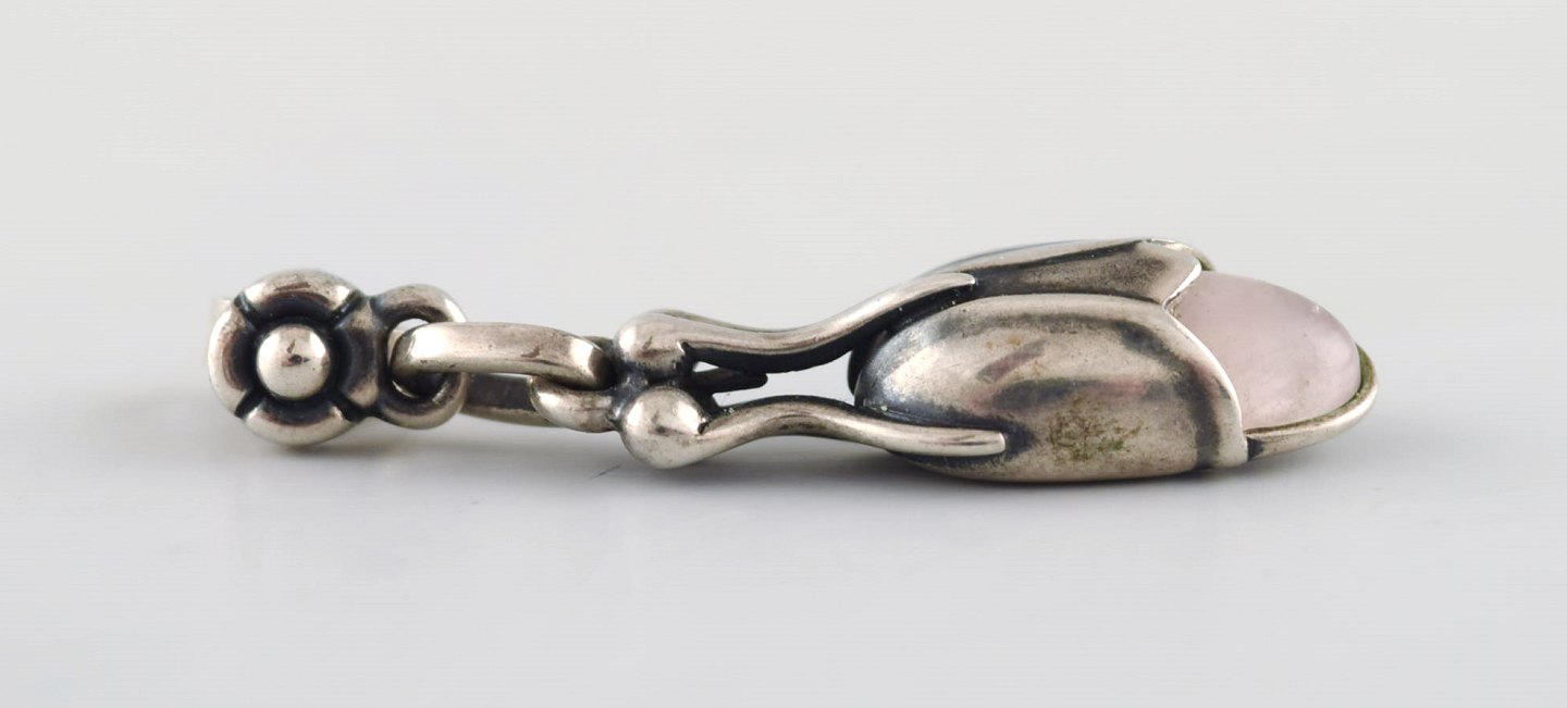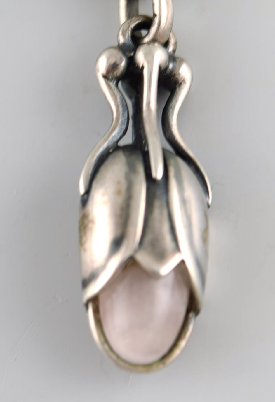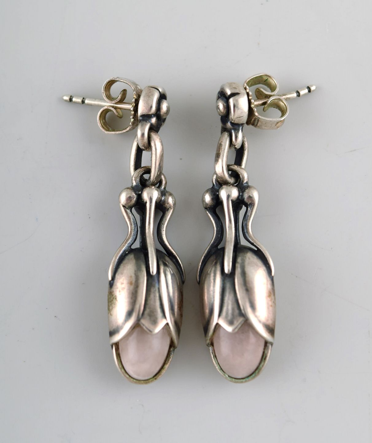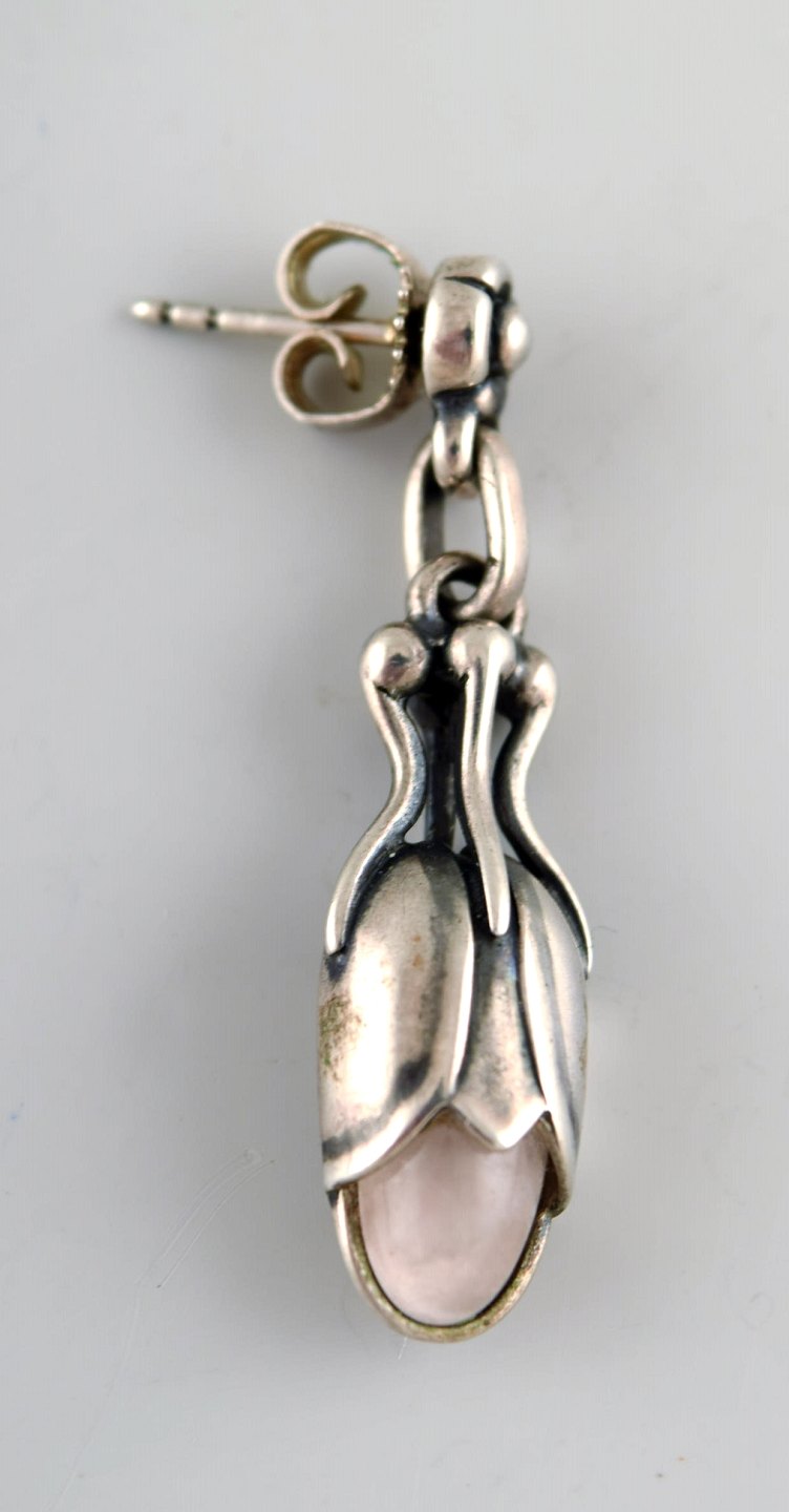 Et par ørehængere i sterlingsølv af Georg Jensen prydet med rosenkvarts. "Årssmykke" 2011. Stemplet. I flot stand. Måler: 3,5 cm x 1 cm.
