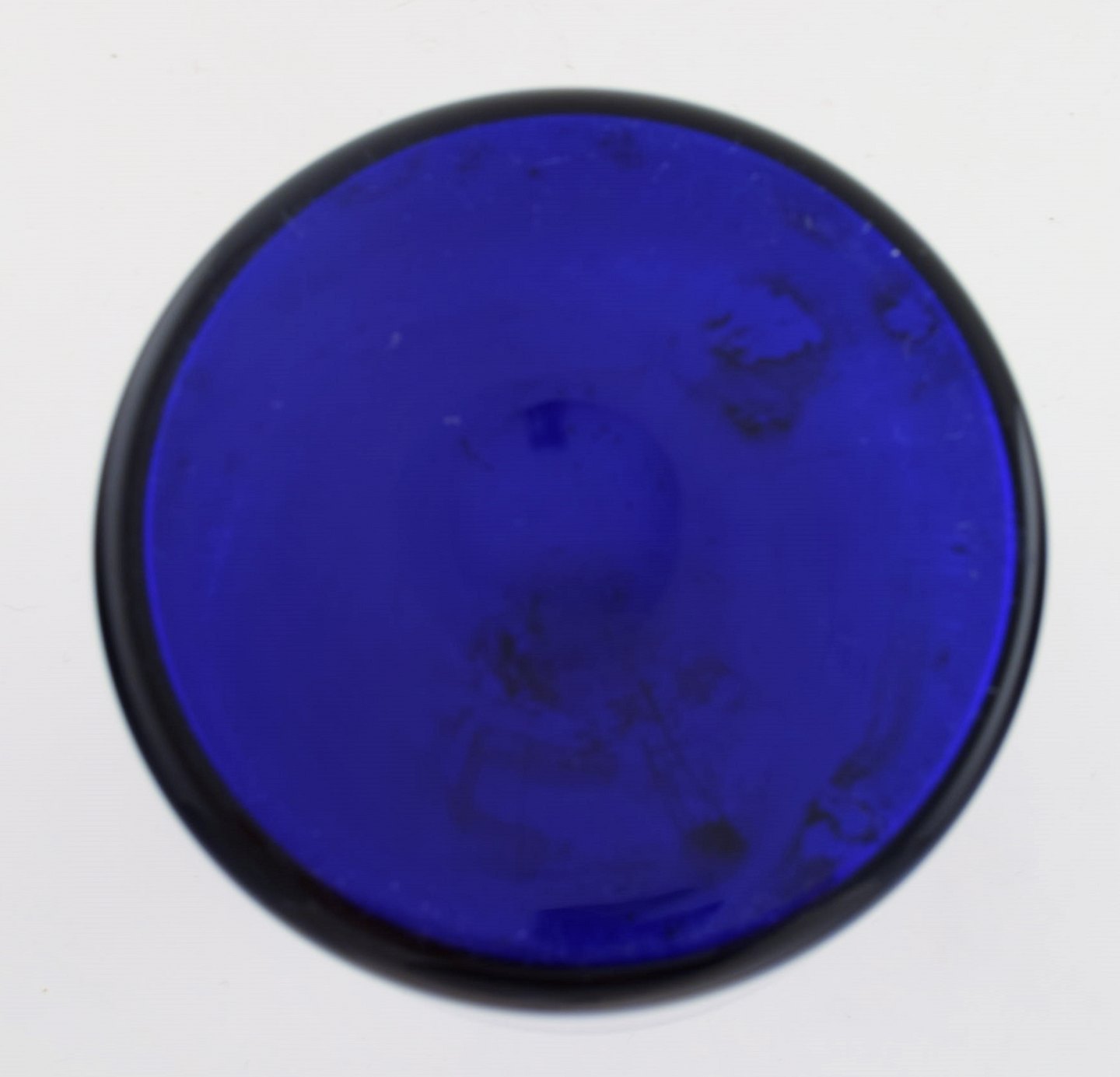 Holmegaard stor vase/flaske med låg i form af kugle, Otto Brauer. Mørkeblåt kunstglas.