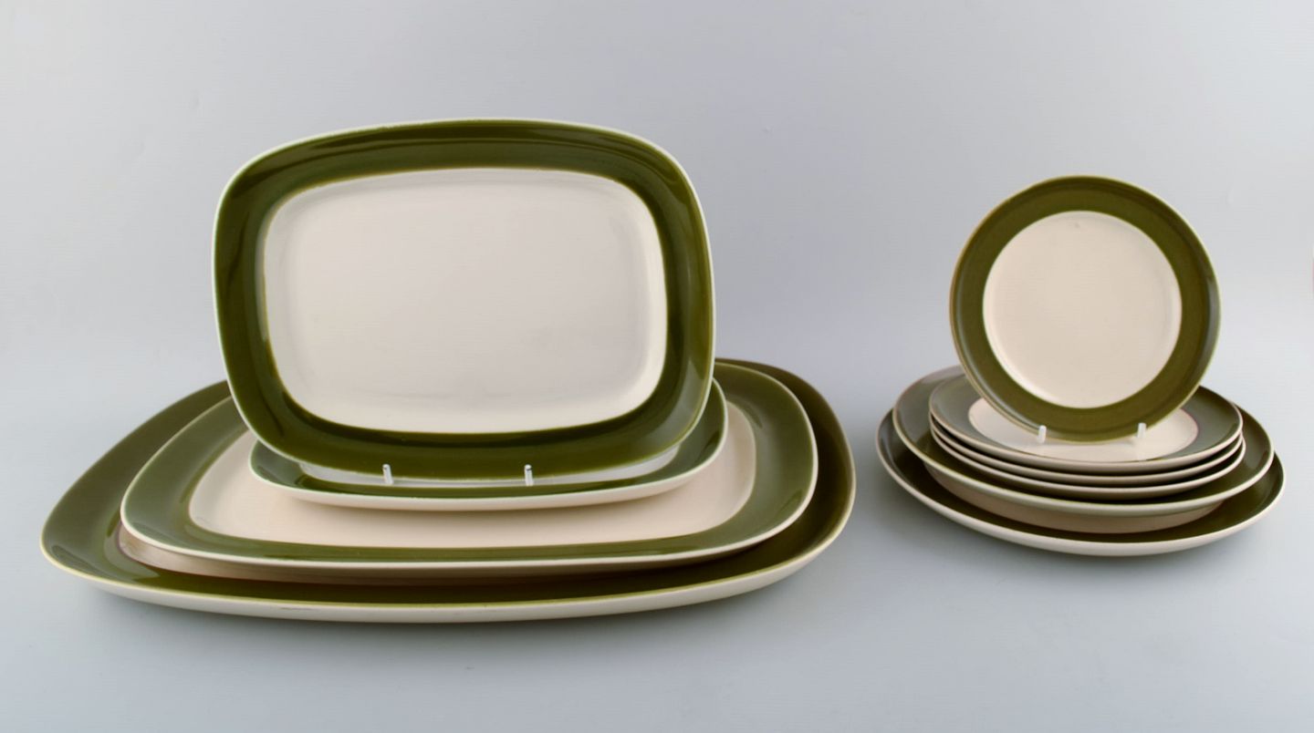 Timiana middagsservice fra Aluminia i fajance. Bestående af 4 fade og 5 tallerkener. 1960erne.