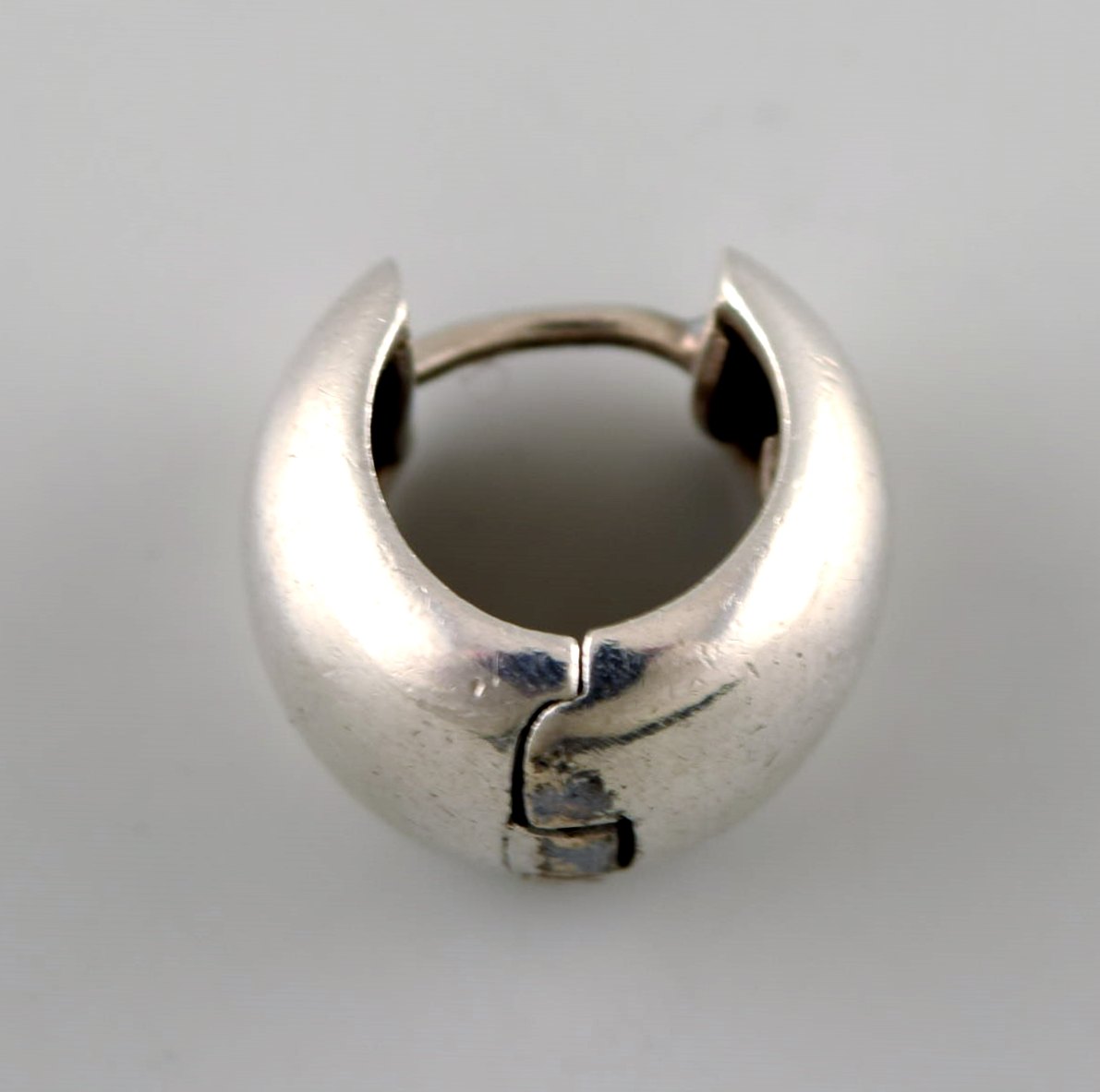 Et par skandinaviske modernistiske øreringe i sølv. 1960'erne. Stilrent design. I flot stand. Måler: 2 x 2 cm. Stemplet: JOP.