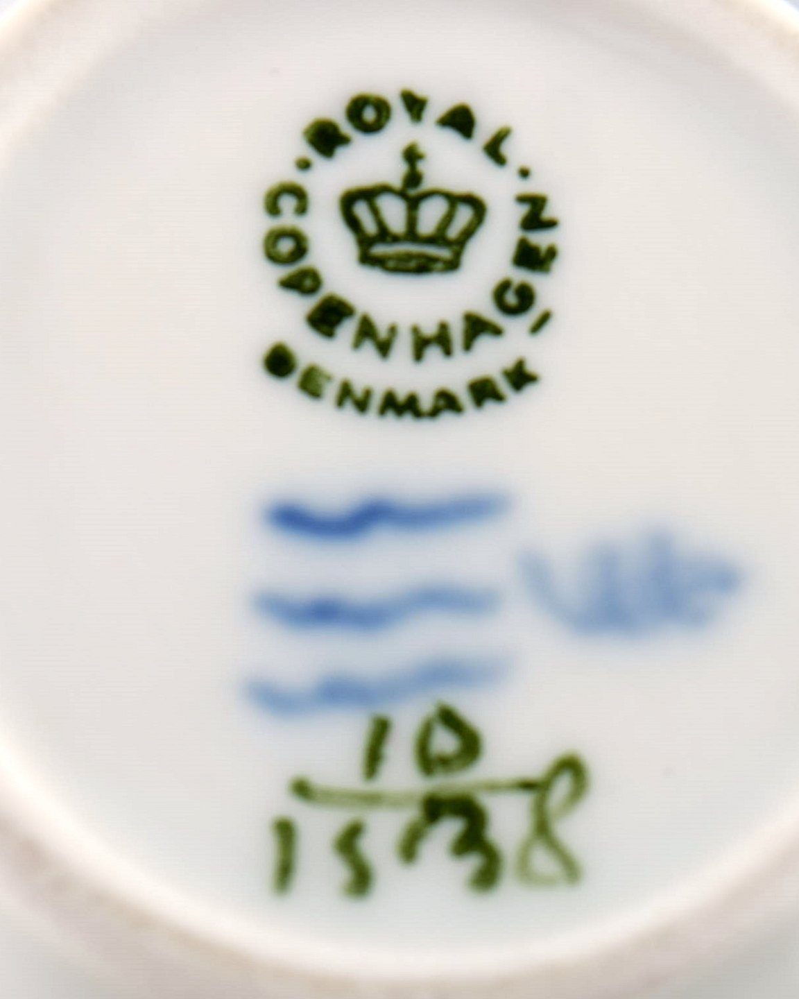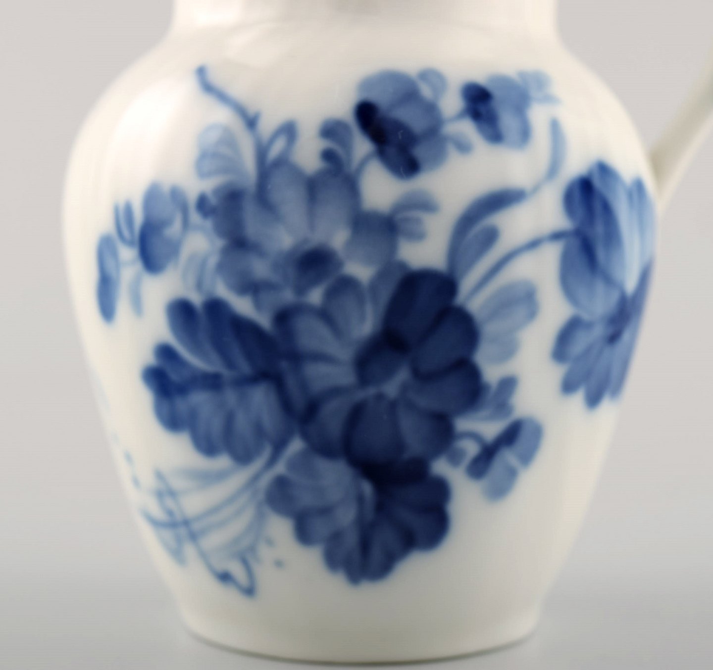 Blå blomst svejfet flødekande fra Royal Copenhagen. Stemplet. Nummer 10/1538. 1. sortering. I perfekt stand. Måler 10,5 x 9 cm.
