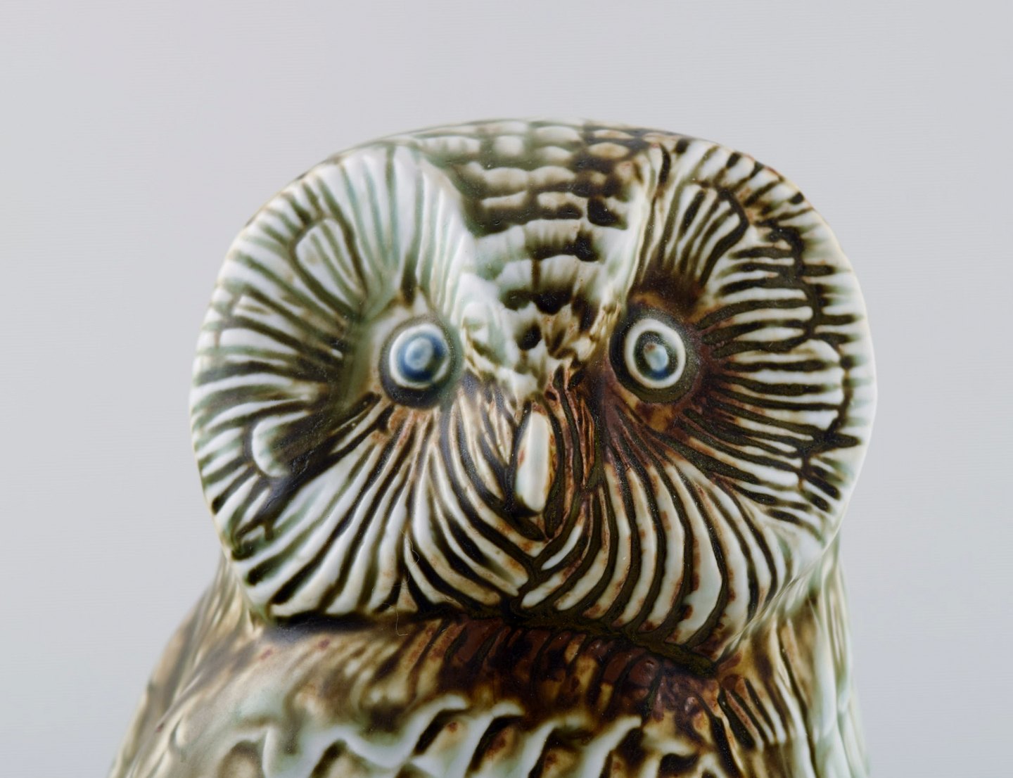 Sven Wejsfelt for Gustavsberg. Owl in stoneware. FLOCK-4. Beautiful glaze in light shades. stamped. In perfect condition. Measures 18 x 10.5 cm.
