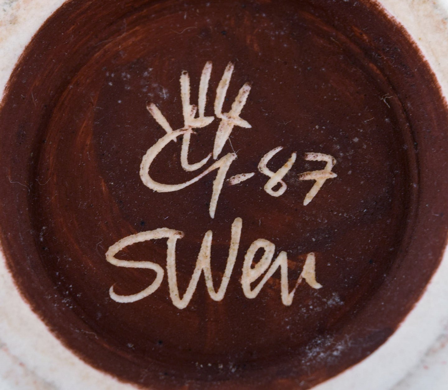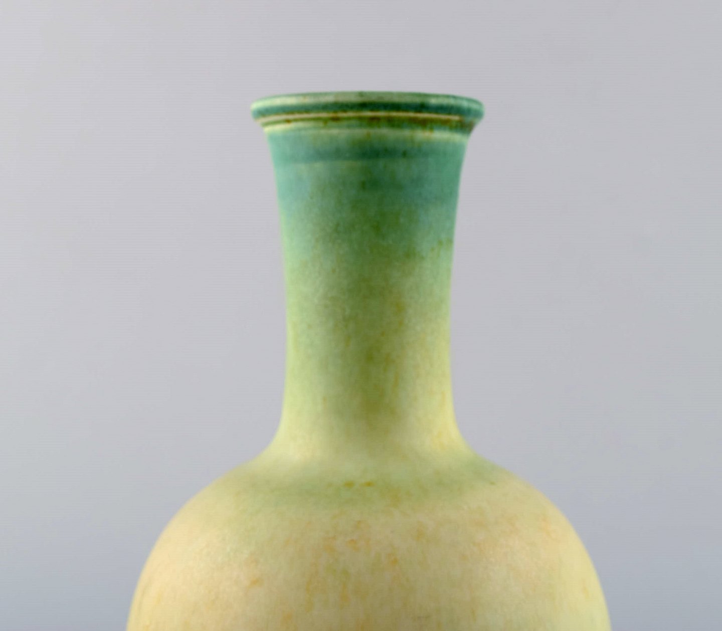 Sven Wejsfelt stor unika keramikvase. Svensk keramiker. 1987. Gustavsberg studiohand. Smuk glasur i grønlige og lyse nuancer. I perfekt stand. Måler 18 x 11,5 cm. Stemplet og dateret.