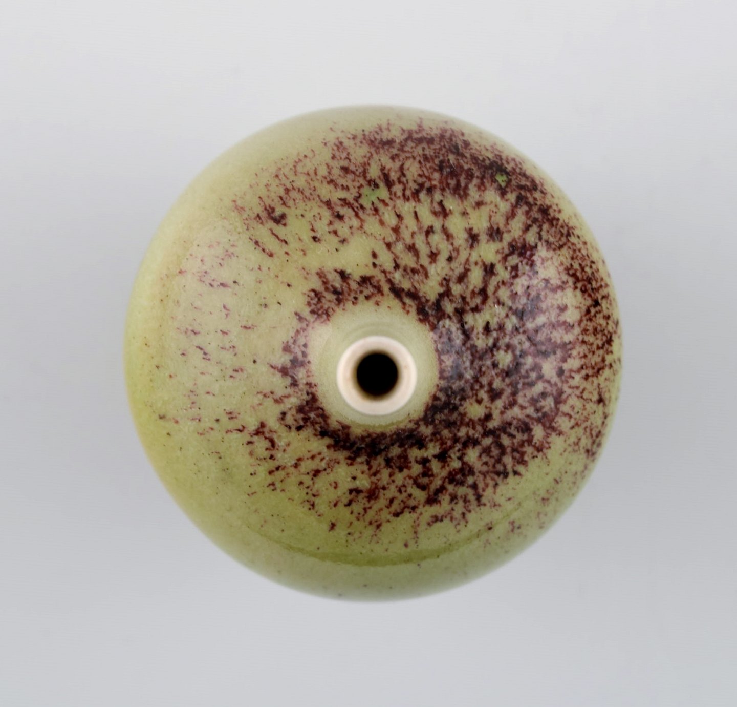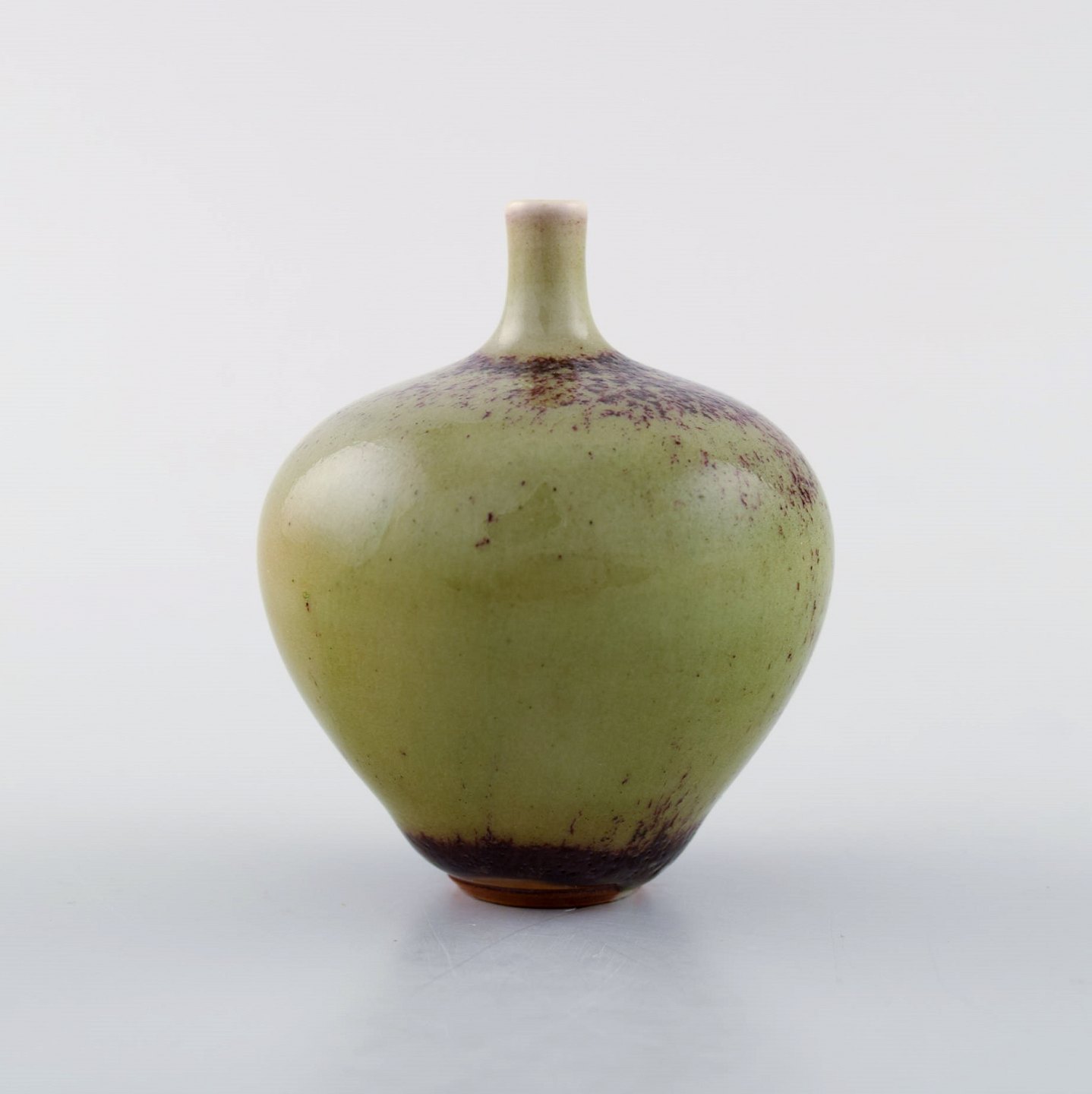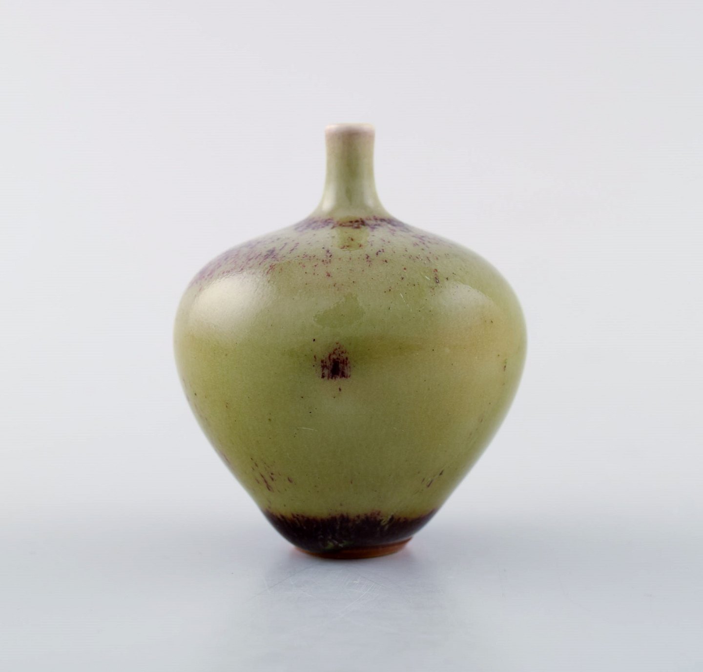 Berndt Friberg Studio keramikvase. Moderne svensk design. Unika, håndlavet. Smuk glasur i grønne og sorte nuancer. Perfekt stand. 1. sortering. Måler: 5 x 5 cm. Signeret.