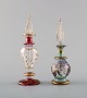 Stor samling af italienske flakoner i mundblæst kunstglas. Delvist farvet glas dekoreret med bladguld. 1930/40'erne.