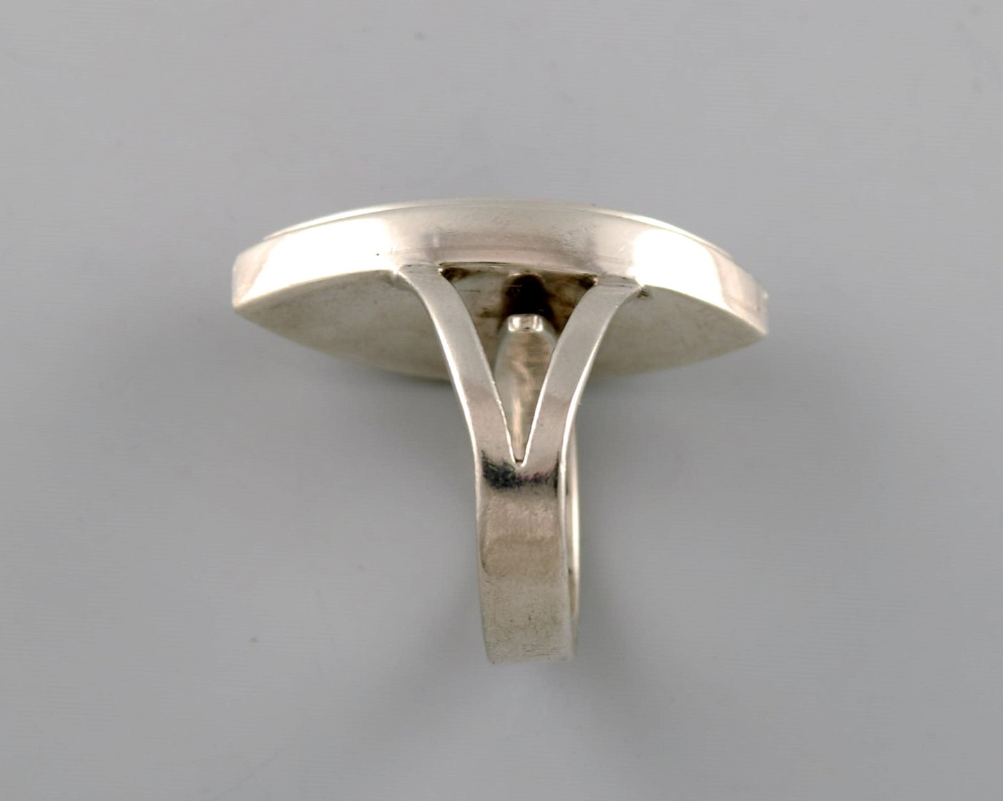 Skandinavisk modernistisk ring i sterlingsølv og eksotisk træ. 1960'erne.