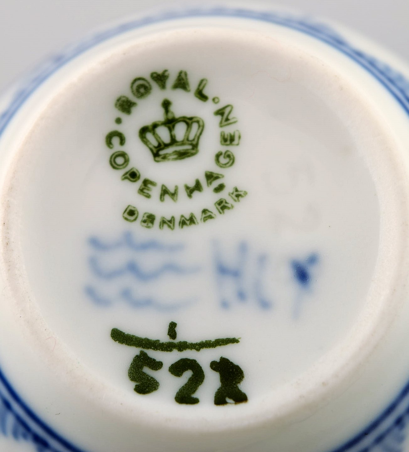 Royal Copenhagen Musselmalet Halvblonde kaffekop med underkop.