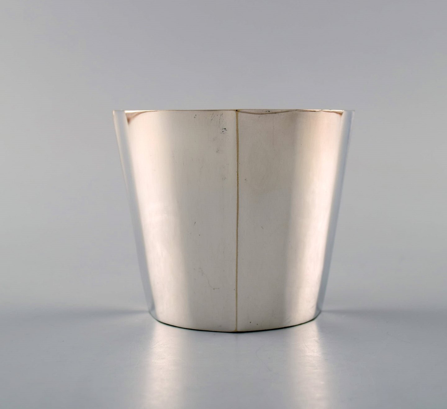 Sigvard Bernadotte for Gense. Sæt på 6 stk jagtbægre/drinkbægre i nysølv. Moderne svensk design, 1960'erne. Stemplet. I perfekt stand. Måler: 8 cm x 7 cm.