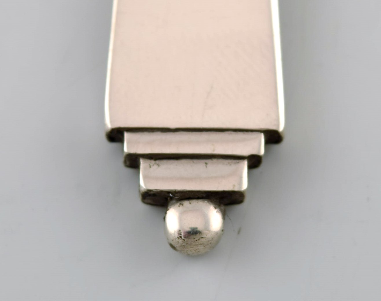 Georg Jensen sterlingsølv pyramide barnegaffel i sterlingsølv. 1933-1944. Måler 14 cm. Designet af Harald Nielsen 1933-44. I perfekt stand. Stemplet og dateret: 1933-1944.