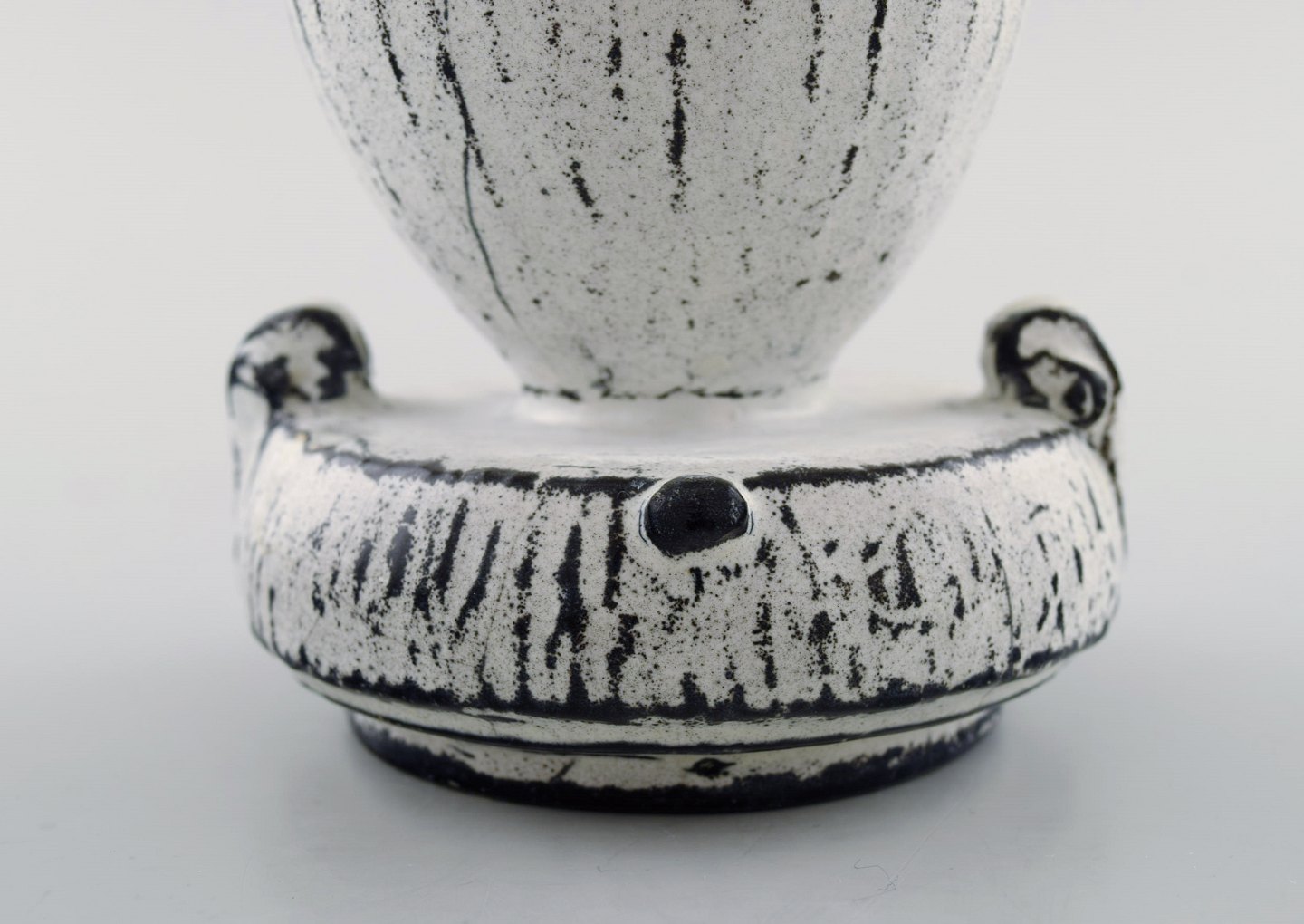 Svend Hammershøi for Kähler, HAK, vase i glaseret stentøj. 1930/40'erne. Sjælden form. I perfekt stand. Flot sort/grå dobbeltglasur. Stemplet. Måler: 9 x 8 cm.