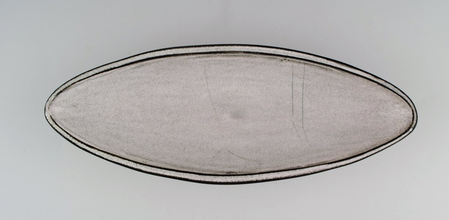 Svend Hammershøi for Kähler, HAK, fad i glaseret stentøj. I perfekt stand. 1930/40'erne. Flot sort/grå dobbeltglasur. Stemplet. Måler 31 x 11,5 x 5 cm.