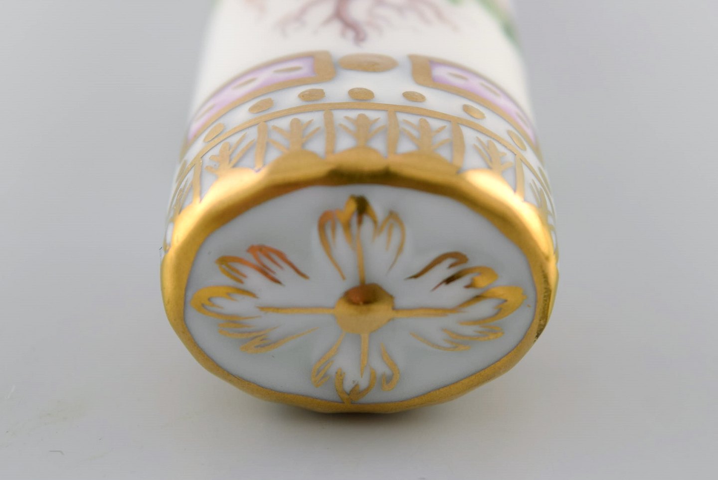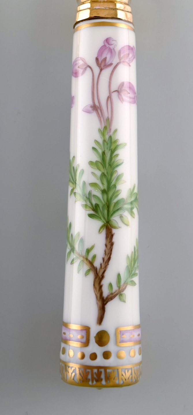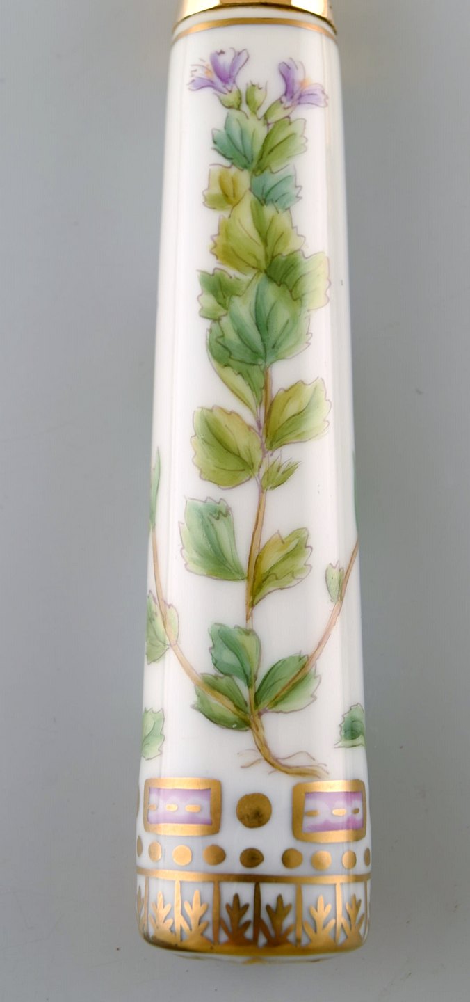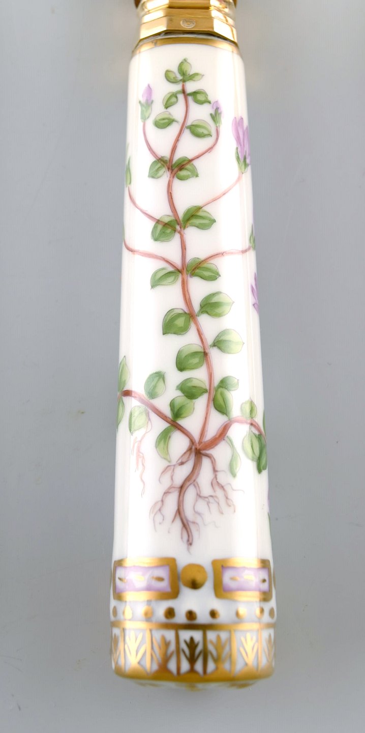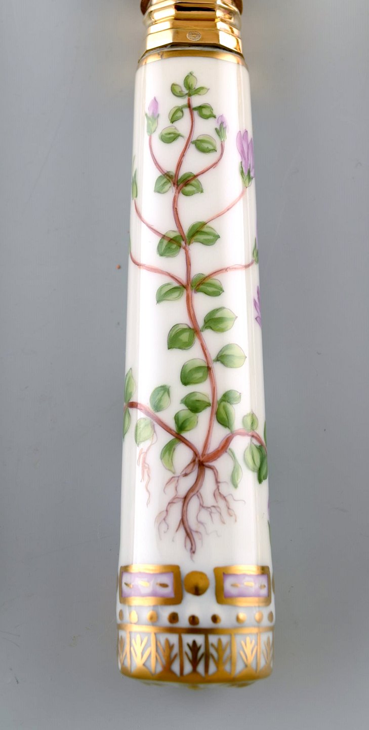 Georg Jensen for Royal Copenhagen. "Flora Danica" dinner set consisting of dinner knife, dinner fork and tableware in gold plated sterling silver. Porcelain handles decorated in colors and gold with flowers.