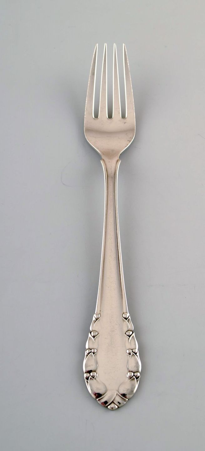 Georg Jensen "Liljekonval" middagsgaffel i sterlingsølv. Måler: 19 cm. I flot stand. Stemplet. Tegnet af Georg Jensen i 1913.