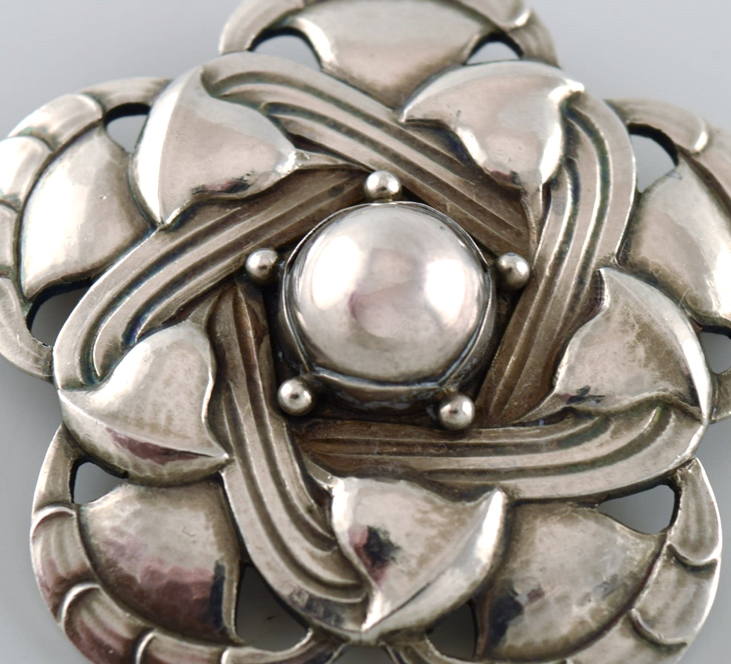 Sjælden skønvirke broche i sterlingsølv af Georg Jensen. Designnummer 12.