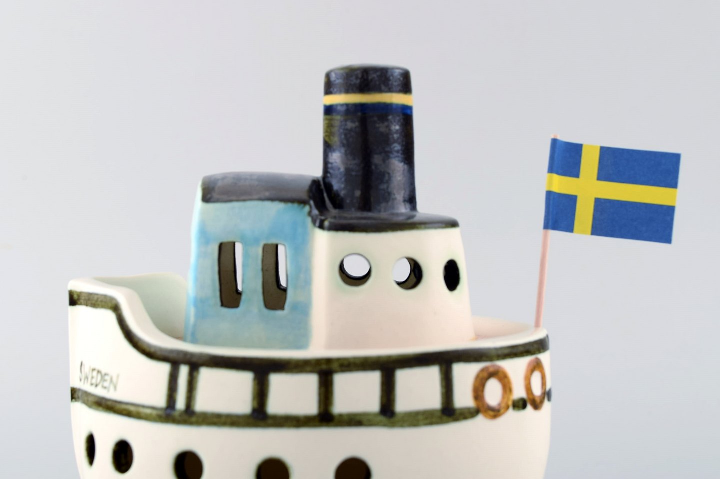 Lisa Larson for K-Studion. Sjælden figur. Skib i glaseret keramik. 1980'erne. I flot stand. Signeret. Måler: 15 x 14 cm.