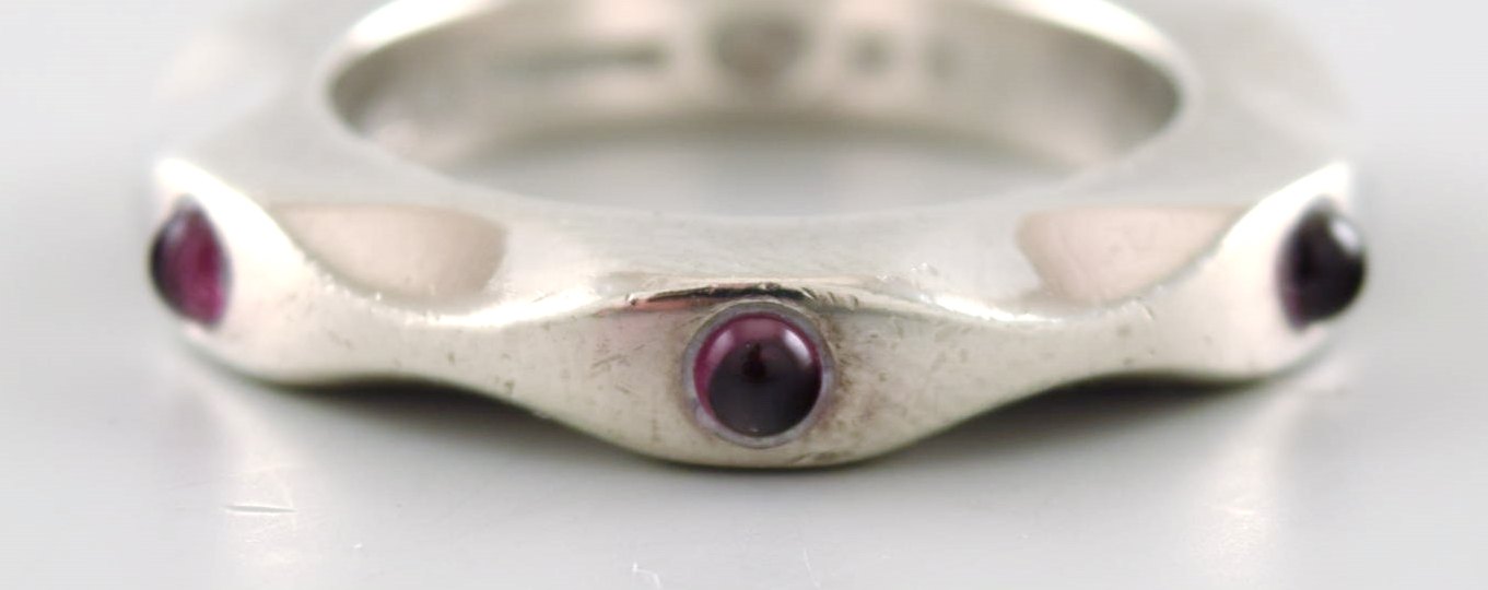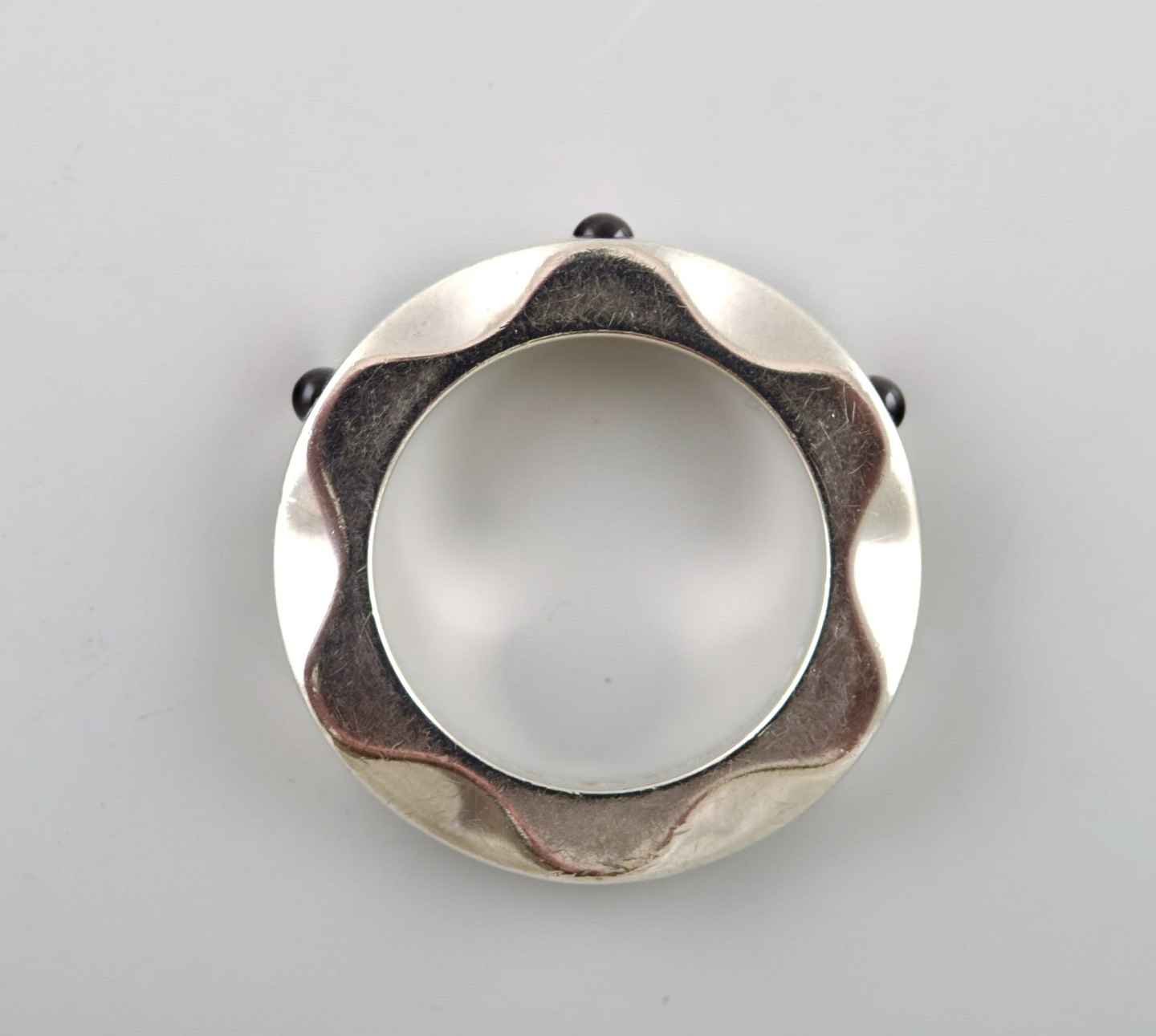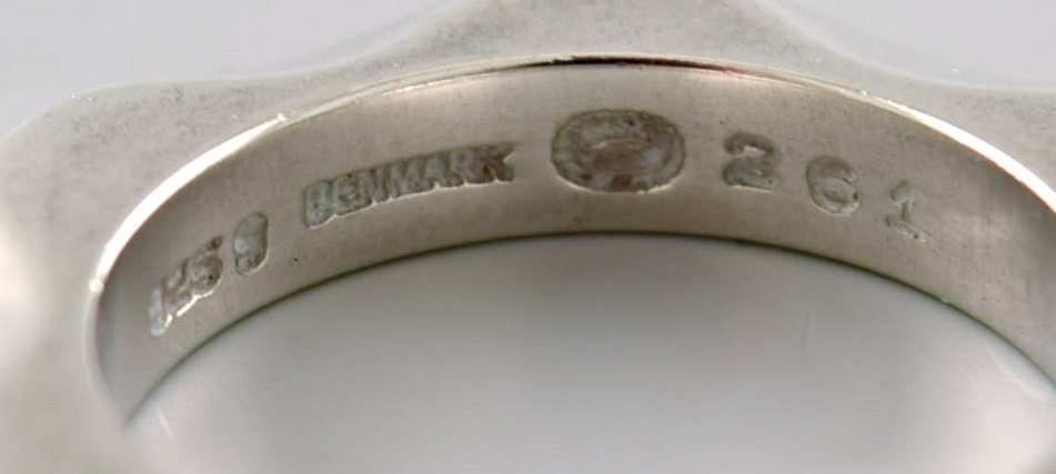 Maria Berntsen for Georg Jensen. "Mirror" ring i sterlingsølv prydet med tre lilla månesten. Modelnummer: 261. Stemplet. 2000-tallet. I flot stand. Måler 17 mm.