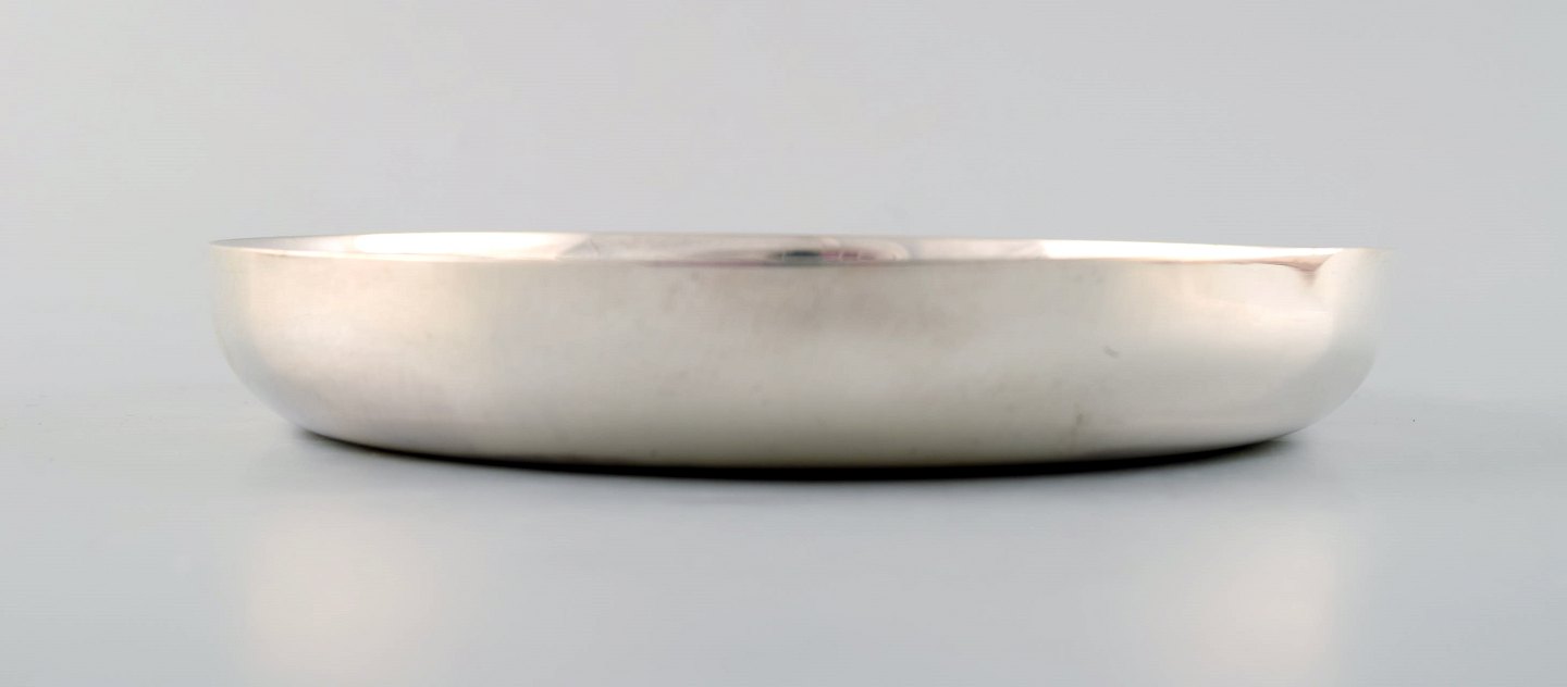 WIWEN NILSSON Lund, Sverige 1941-1956. Champagneflaske bordskåner / lav skål i sterlingsølv. Modernistisk design, 1942. Stemplet og dateret. I flot stand. Måler: 15,5 x 2,5 cm.