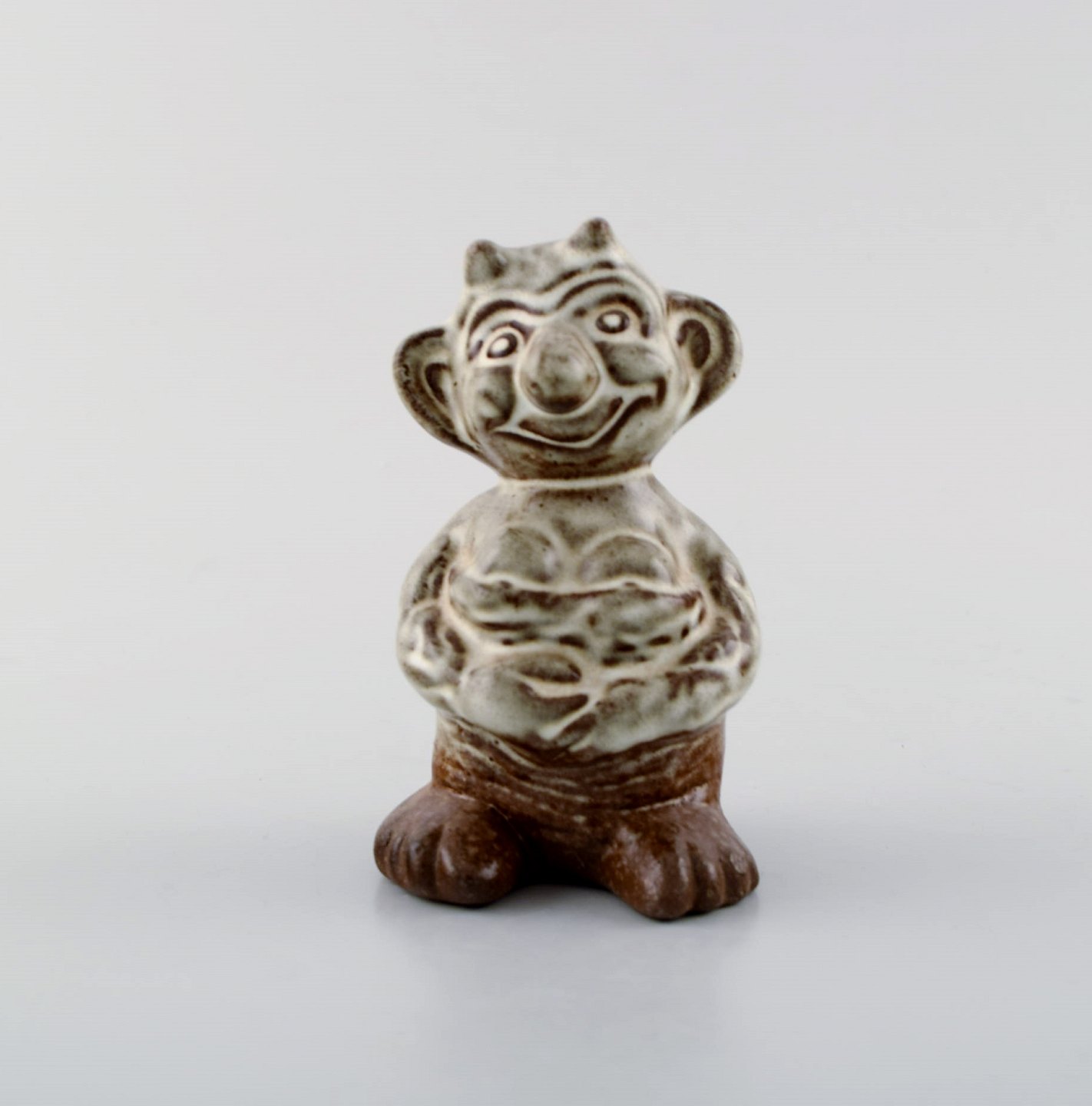 Michael Andersen keramik fra Bornholm. Tre håndmalede figurer. Formgivet af Ludvig Mahler. Krøllebølle-familie. Største måler : 11 cm x 8 cm. Perfekt stand.