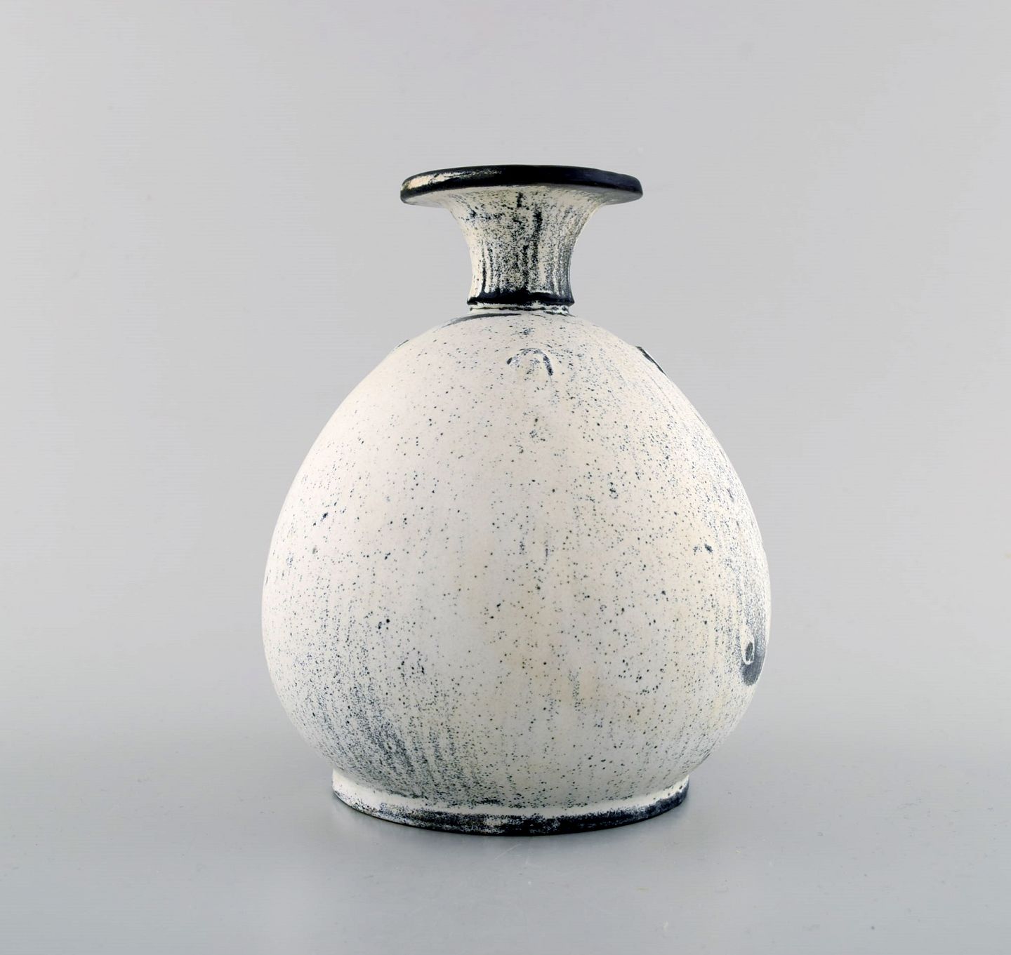 Kähler, HAK, sjælden glaseret stentøjsvase, 1930'erne. Designet af Svend Hammershøi. Smuk gråsort dobbeltglasur. Måler : 16 x 14 cm. Stemplet. I perfekt stand.