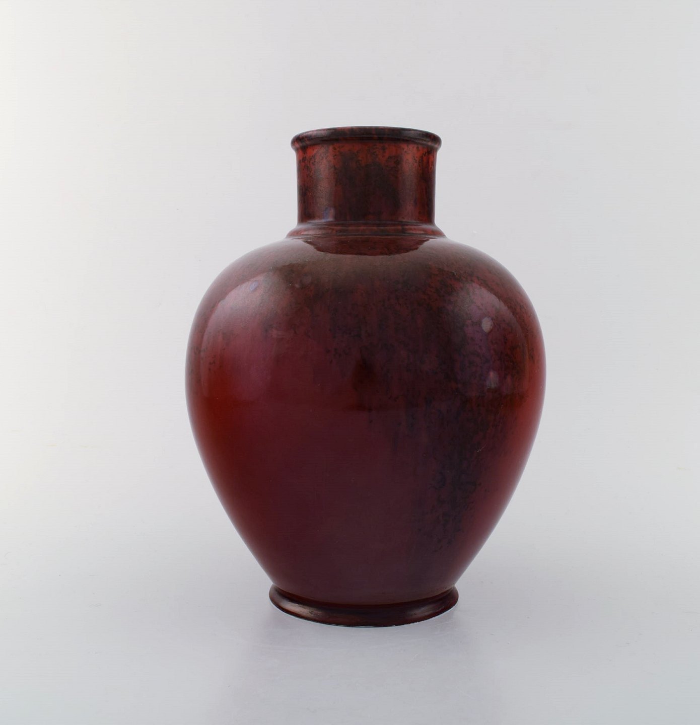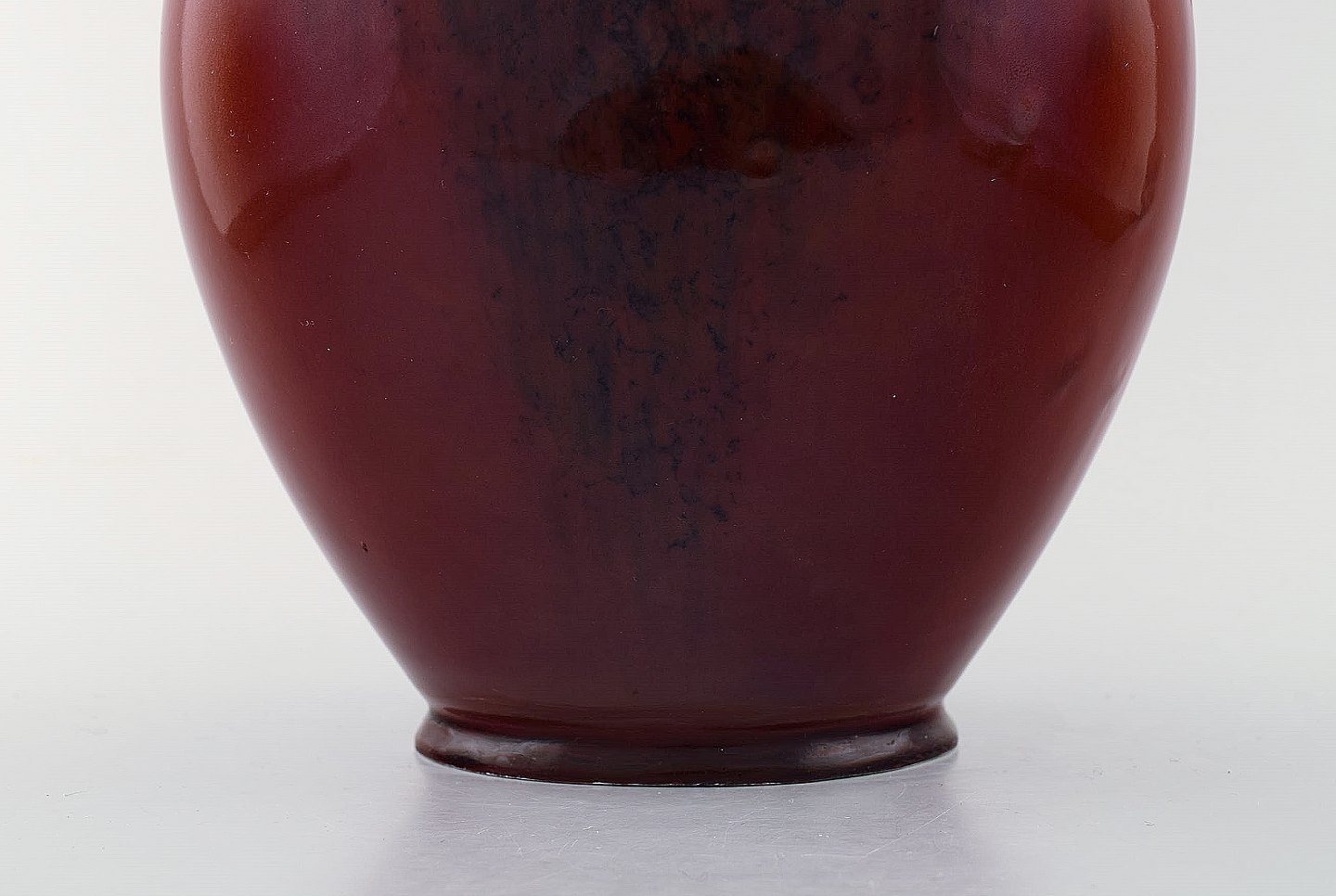 Paul Milet for Sevres. Art deco keramikvase i smuk håndmalet okseblodsglasur. Frankrig, ca. 1930.