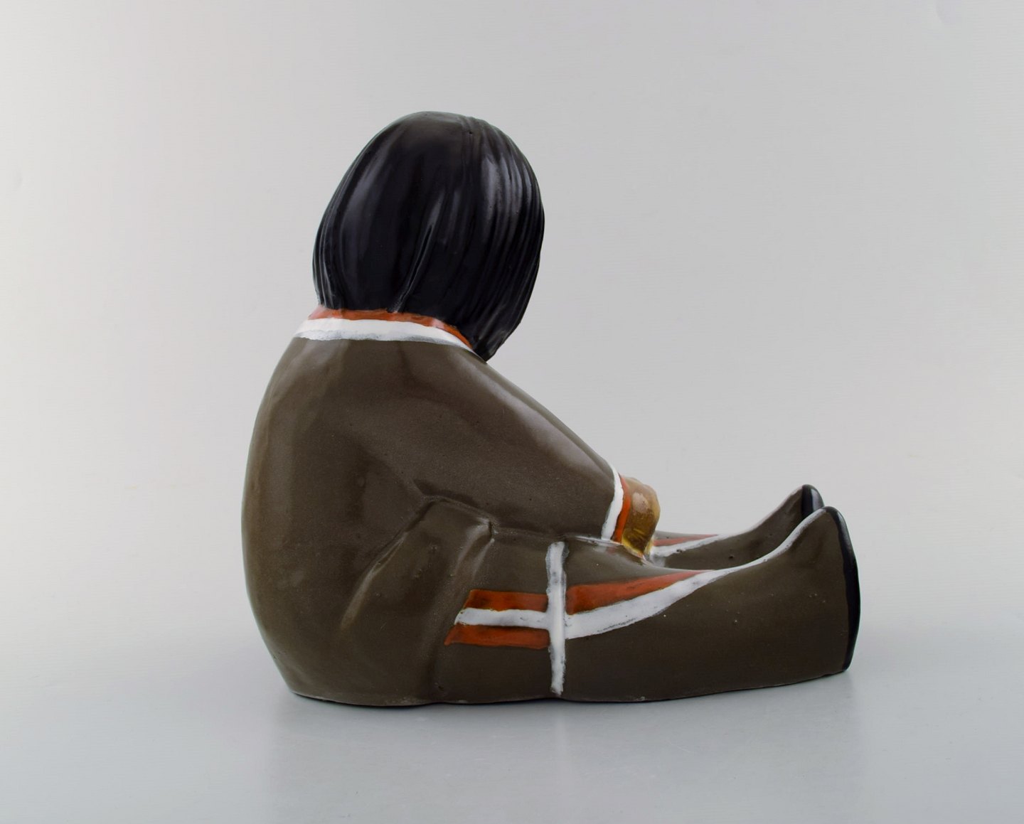 Vicke Lindstrand for Upsala-Ekeby. Signeret. Figur af grønlandsk pige. I perfekt stand. Måler: 24 x 22 cm.