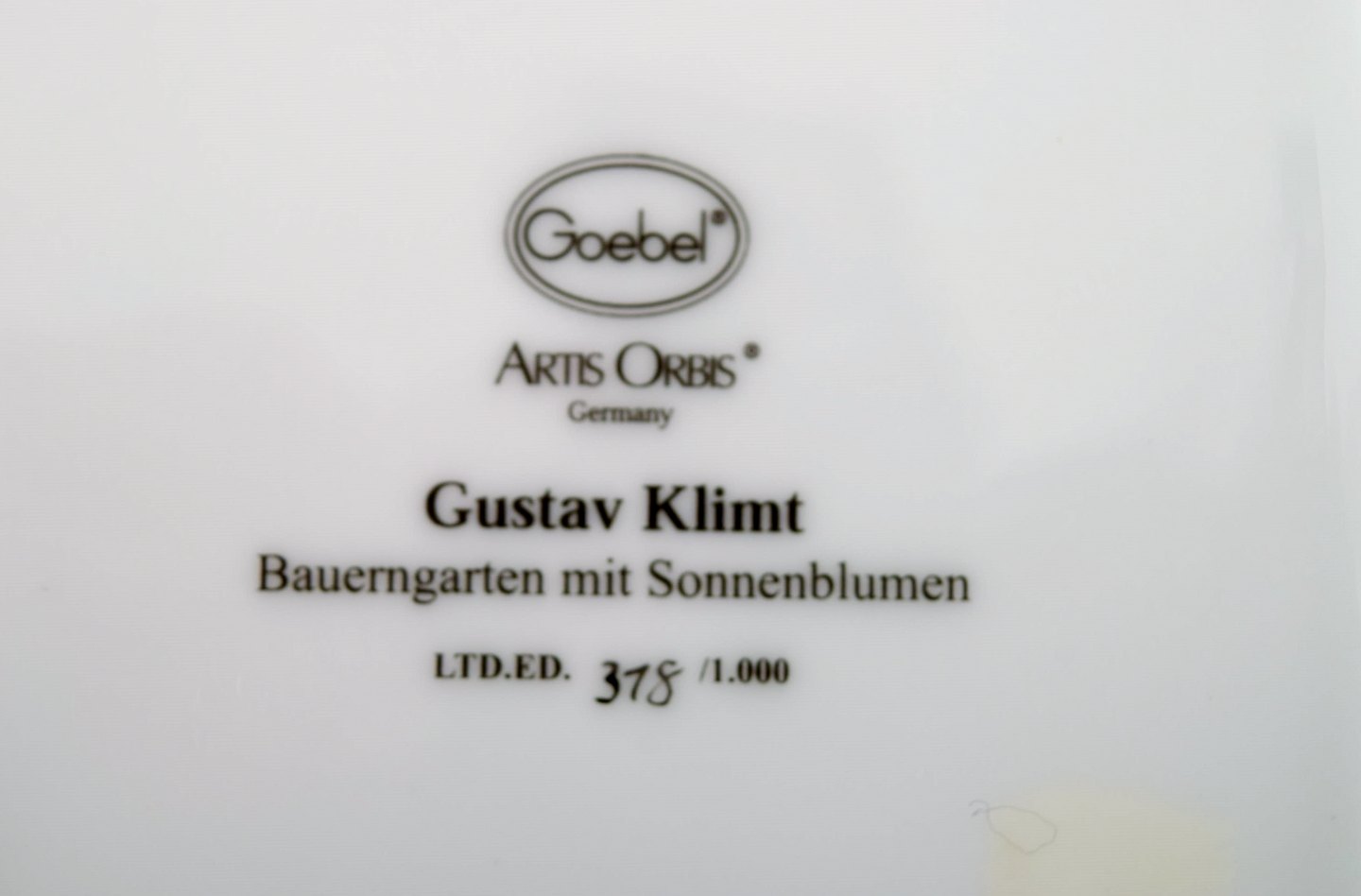 Stor Goebel vase i porcelæn med Gustav Klimt blomstermotiv. "Bauerngarten mit sonnenblumen". Limited edition 318/1000. I flot stand. Stemplet. måler: 28,5 x 14 cm.