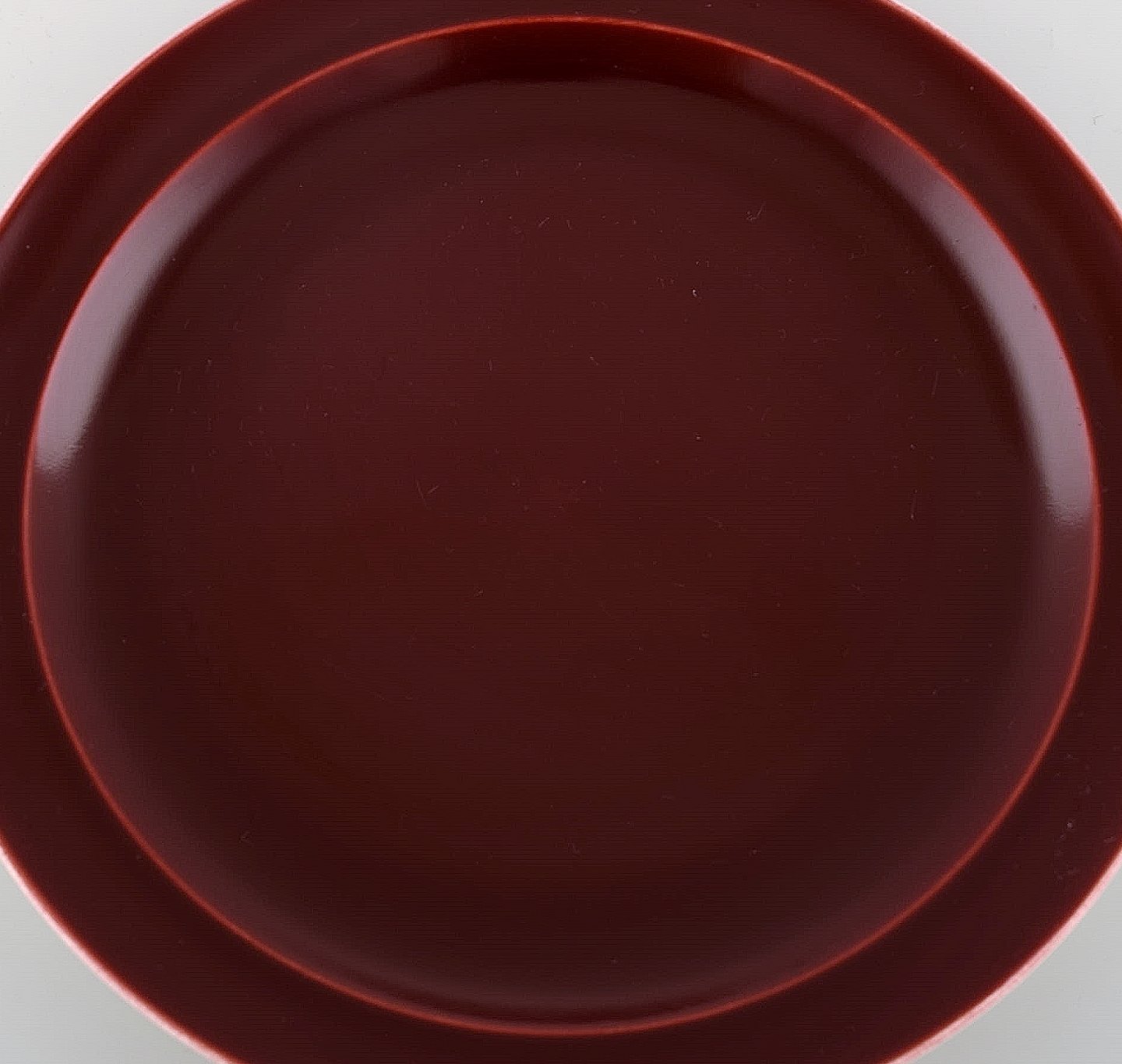 Confetti Royal Copenhagen / Aluminia fajance. Middags/dækketallerken i bordeaux rød. 1940'erne.
