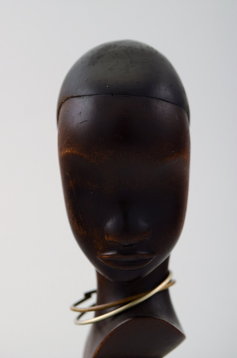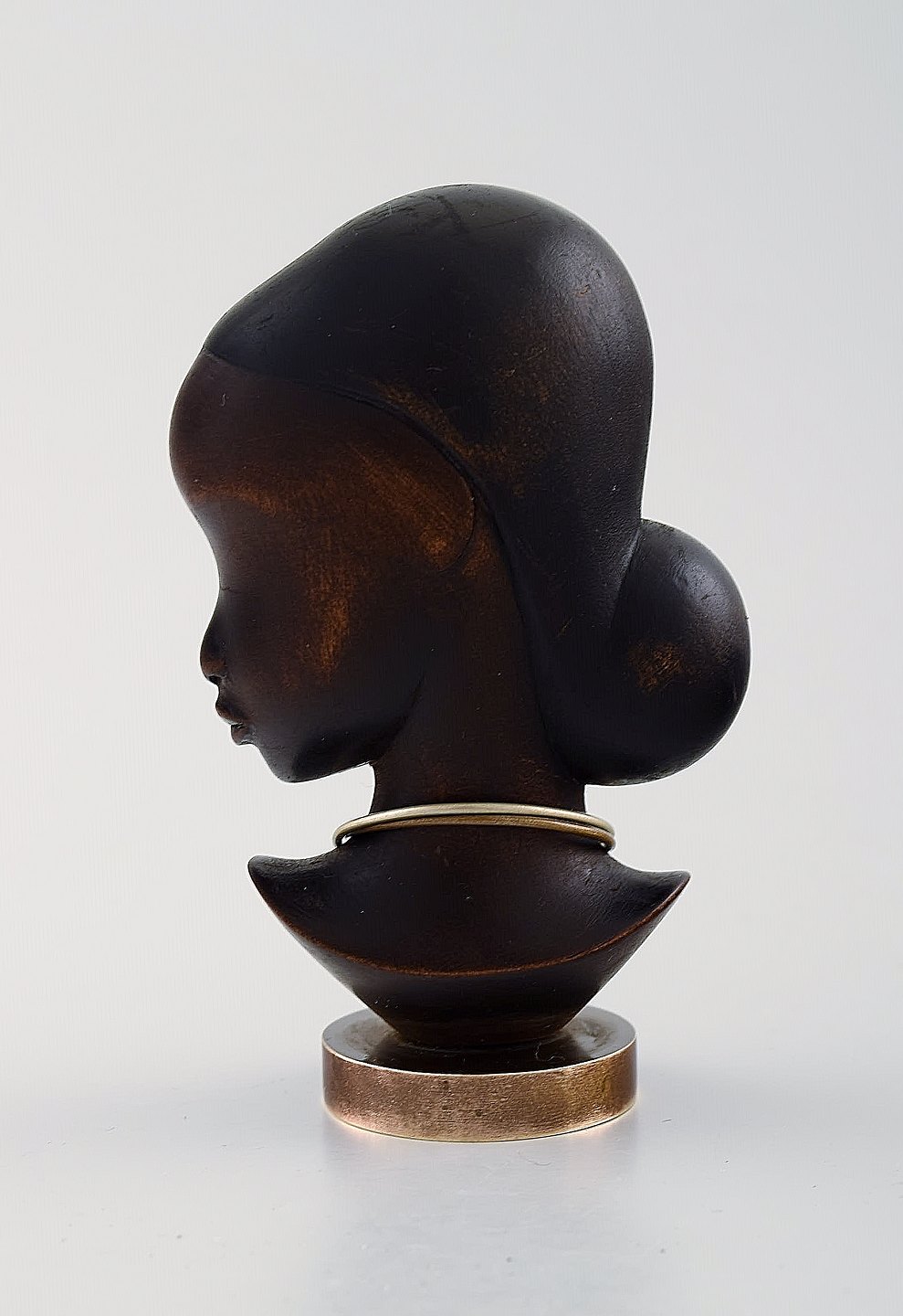 Art Deco skulptur af Karl Hagenauer Wien, Østrig. Negresse i profil i eksotisk træ og bronze. 1930'erne.