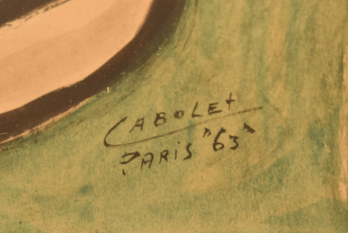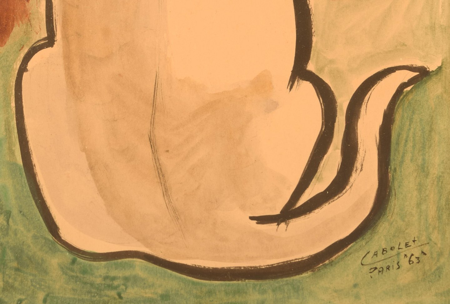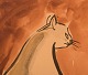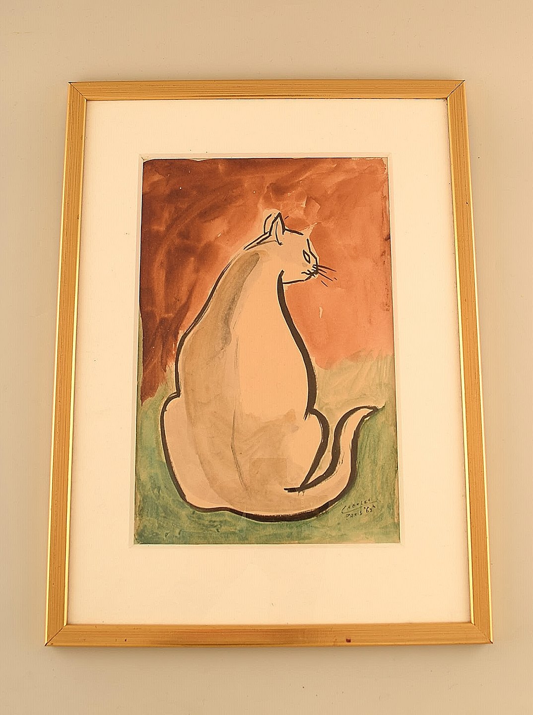 Cabolet, fransk kunstner. Akvarel på papir. Paris, 1963. Bagvendt kat tegnet i modernistisk stil.