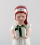 Sjælden Royal Copenhagen porcelænsfigur. Pige med nissehue og julegave. Modelnummer 091. I perfekt stand. 1. Sortering Måler: 13,5 x 8 cm. Stemplet.