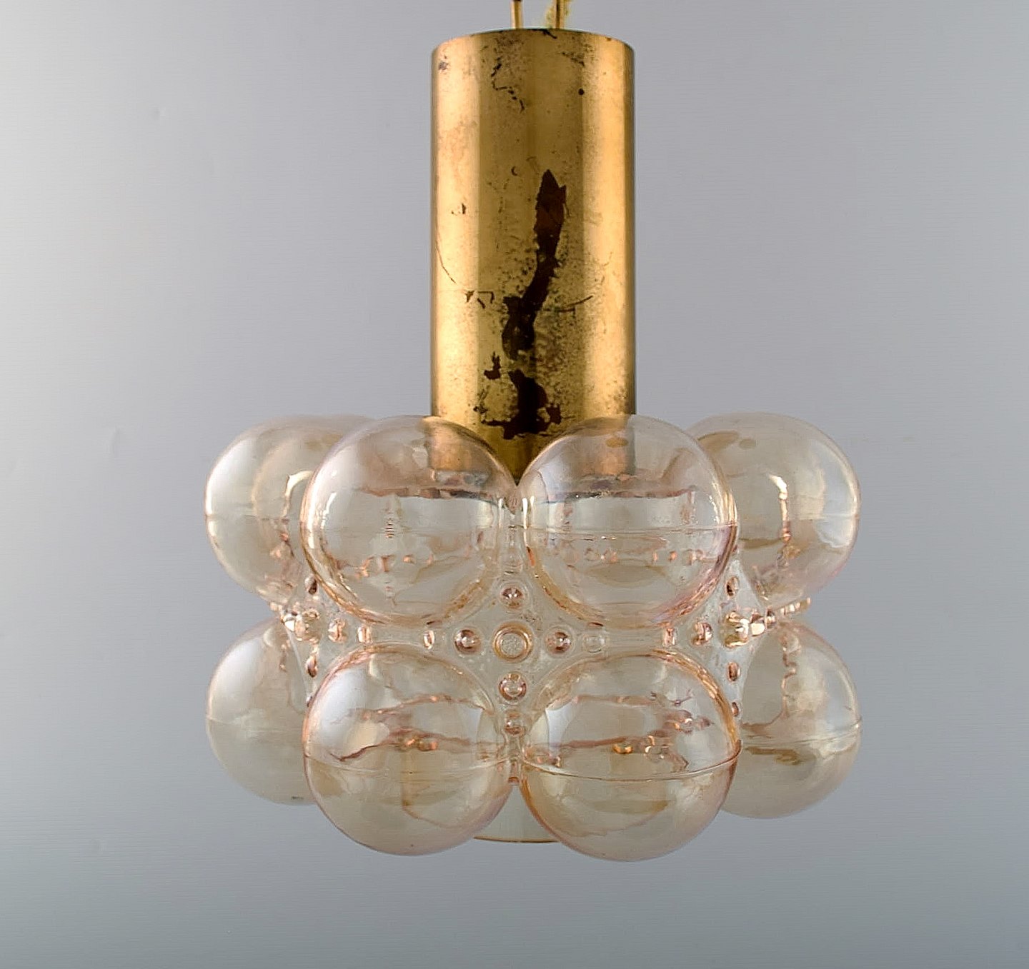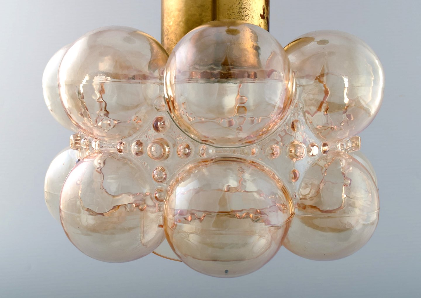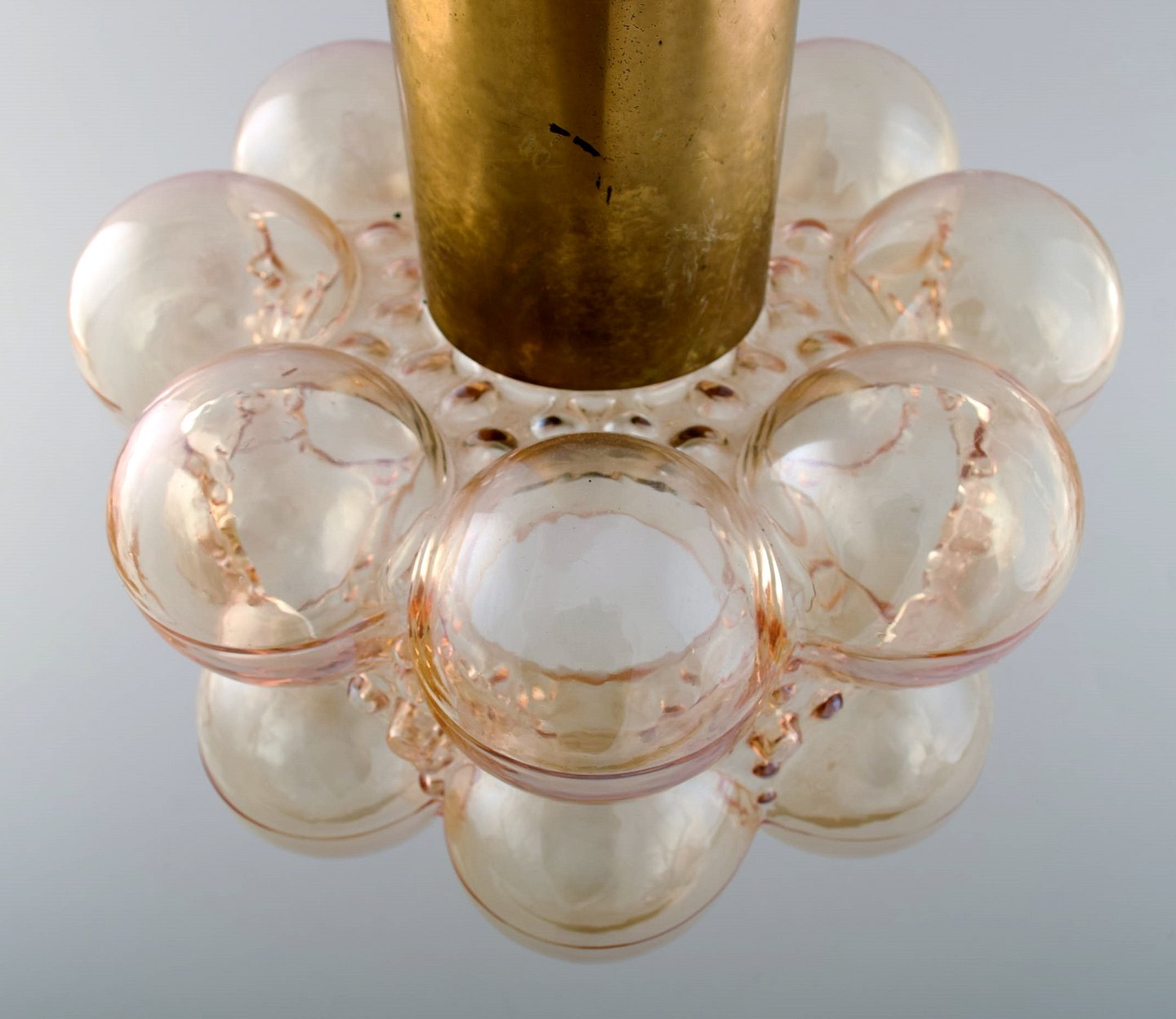 Helena Tynell (f. 1918, d. 2016) for Limburg. Loftpendel, Model: Bubble. Finsk design, 1970'erne. Messingkonstruktion med skærm af bobleformet røgfarvet mundblæst kunstglas.