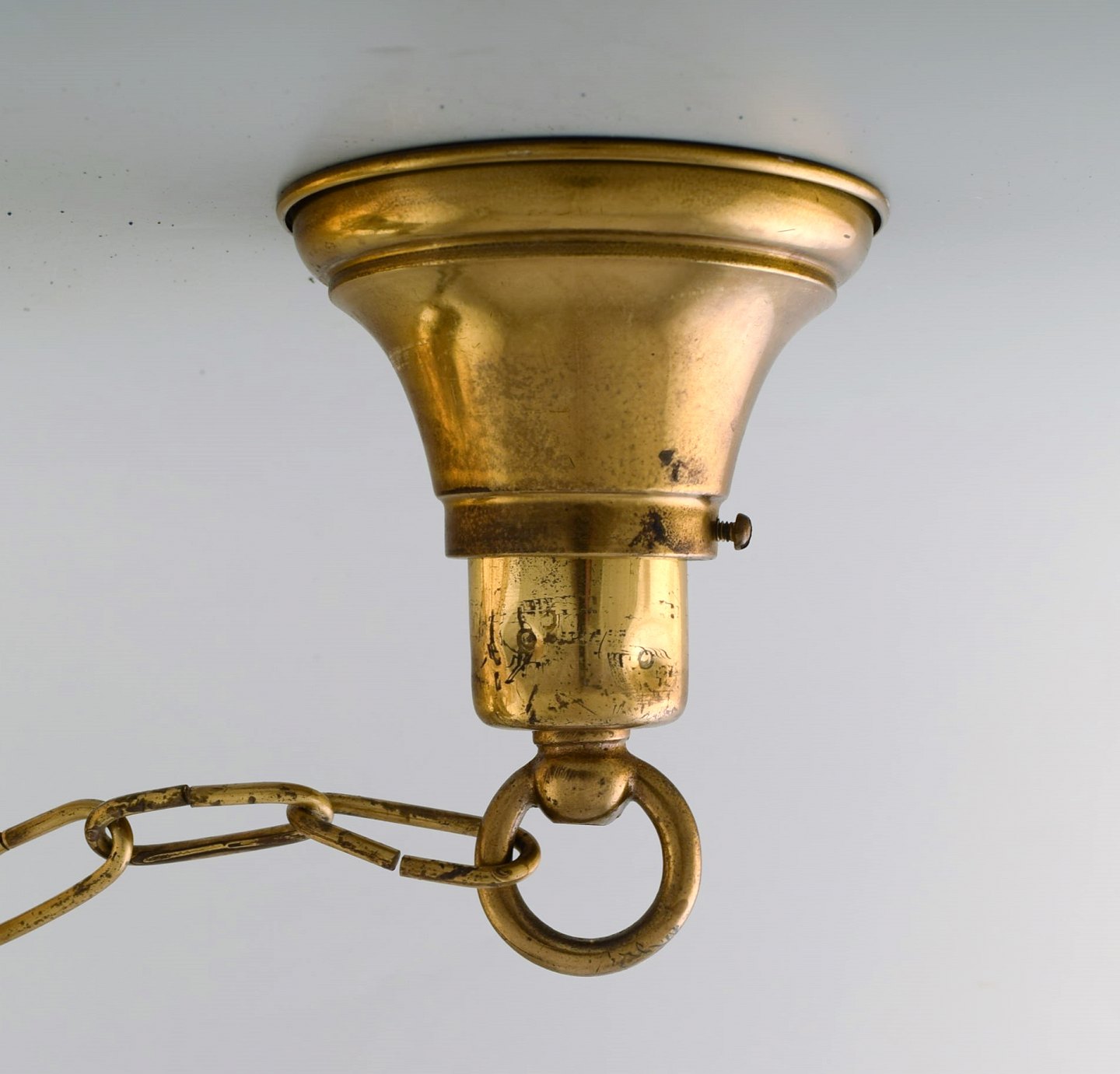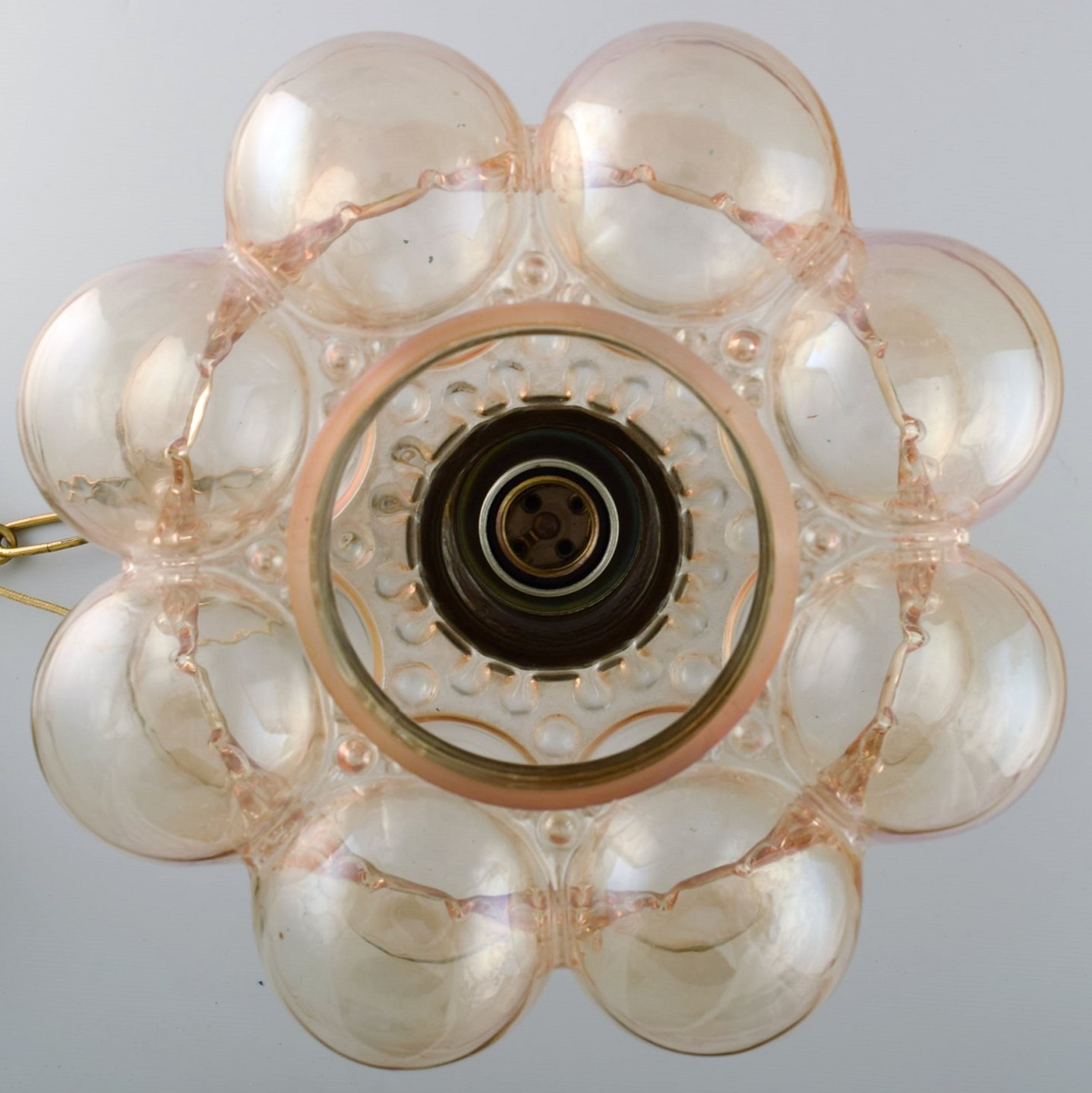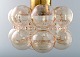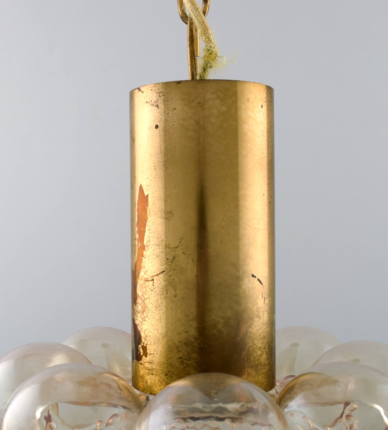 Helena Tynell (f. 1918, d. 2016) for Limburg. Loftpendel, Model: Bubble. Finsk design, 1970'erne. Messingkonstruktion med skærm af bobleformet røgfarvet mundblæst kunstglas.