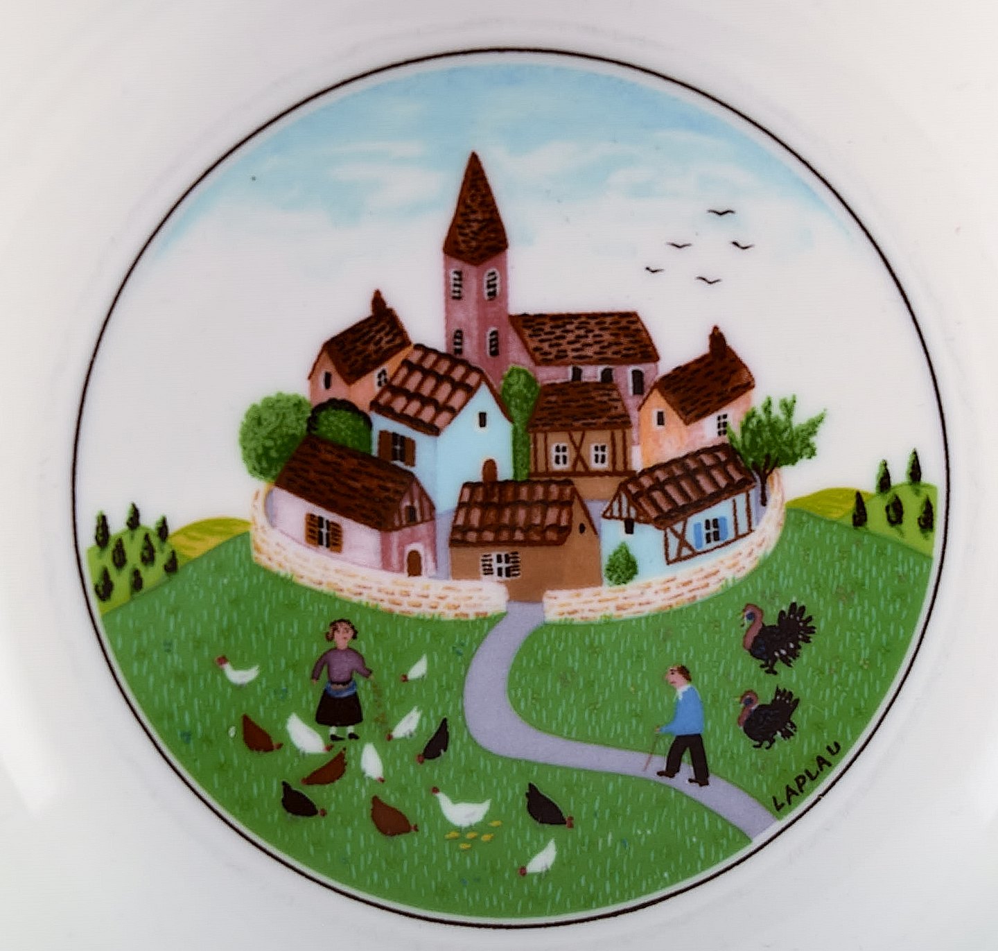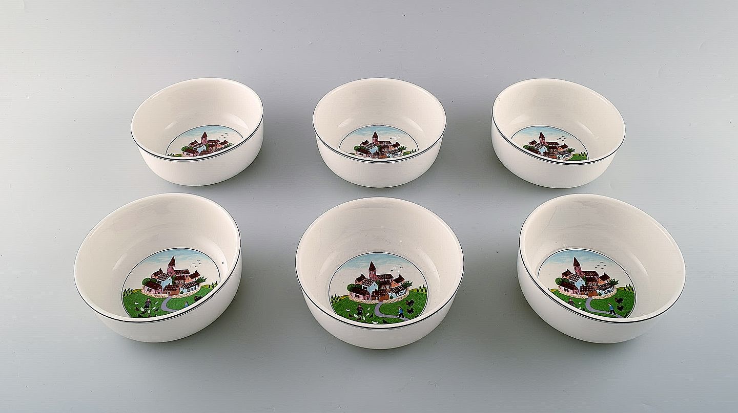 Villeroy & Boch Naif middagsservice i porcelæn. Et sæt på 6 skåle dekoreret med naivistisk landsbymotiv.