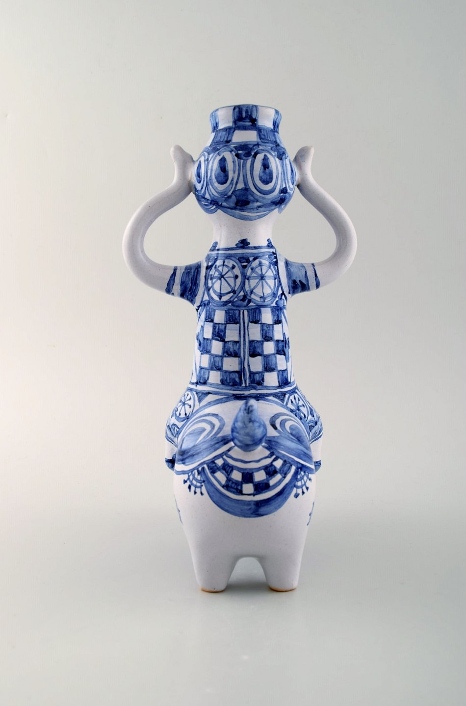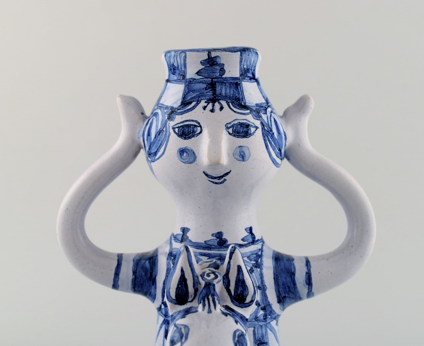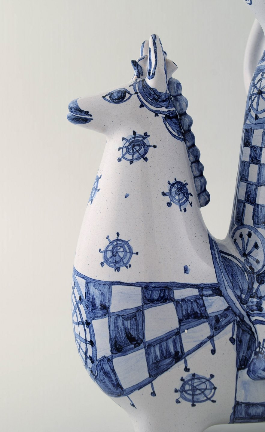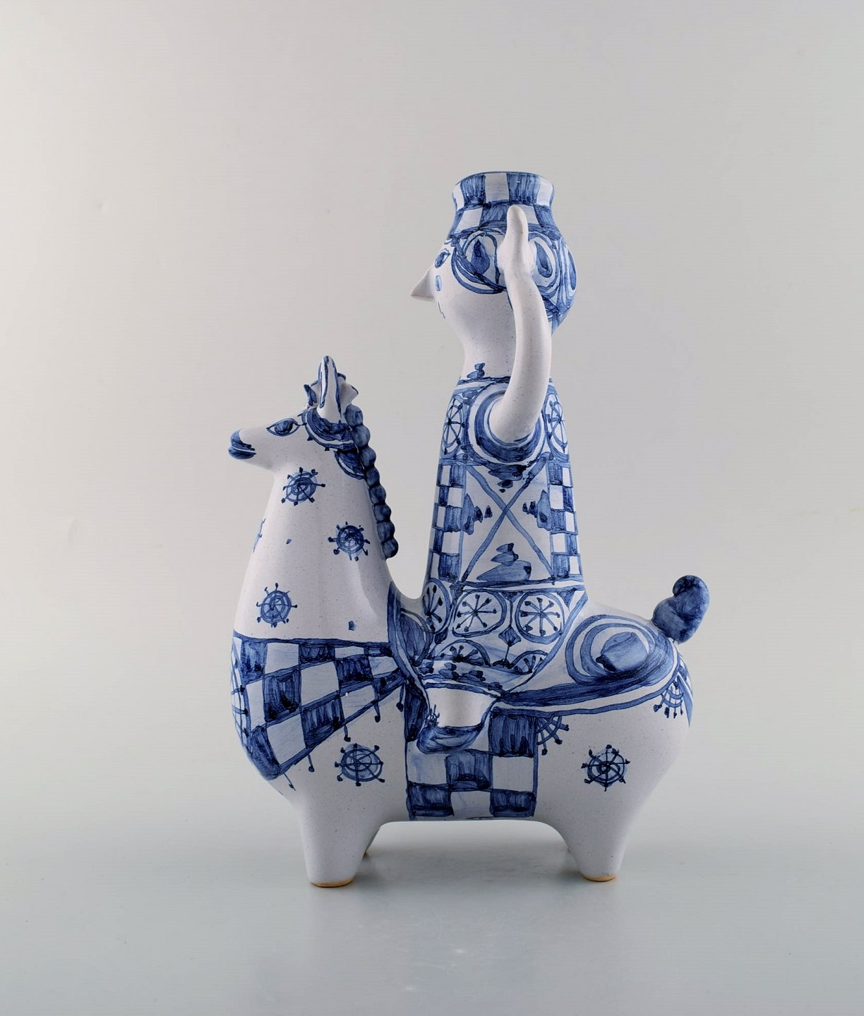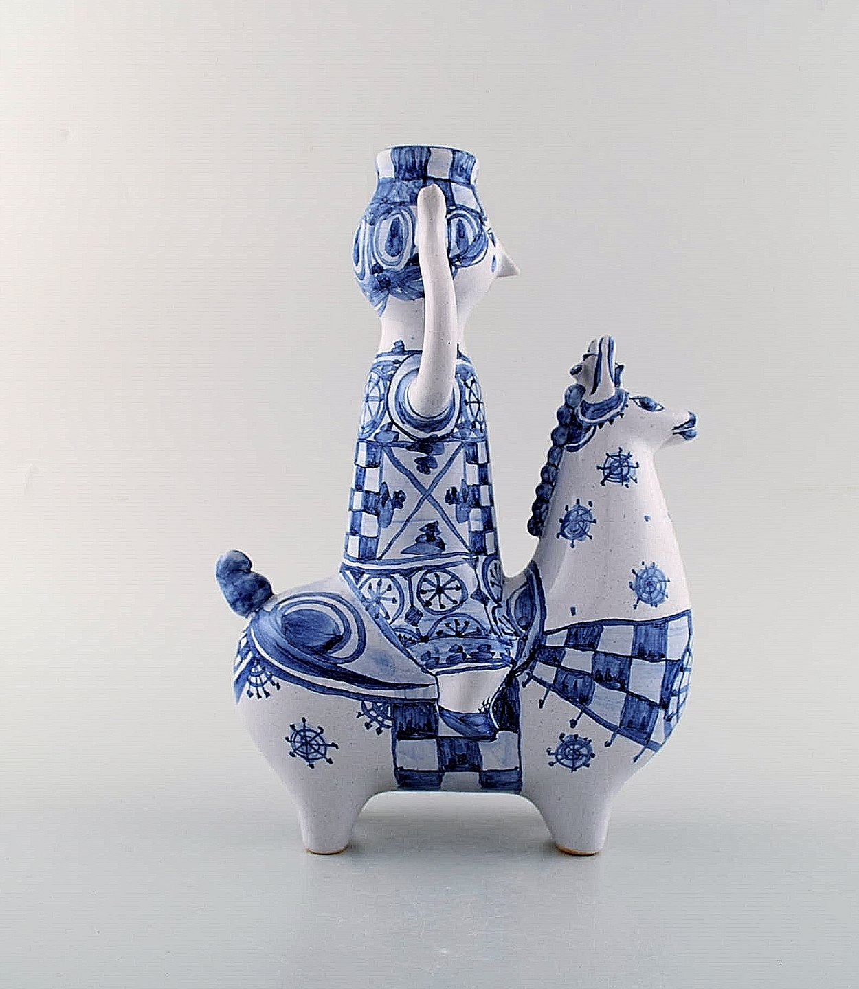 Bjørn Wiinblad keramikfigur fra det blå hus. Figur / lysestage rytter til hest med plads til et lys. Dekorationsnummer L25. Denne er fra 2003. Højde 26 cm., bredde 20 cm. Perfekt stand.