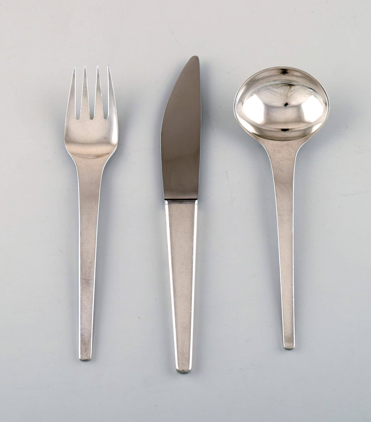 Georg Jensen Caravel luncheon service in Sterling silver. Complete set for 6 people consisting of 6 lunch knives, 6 lunch forks and 6 bouillon spoons. 18 pieces in total.