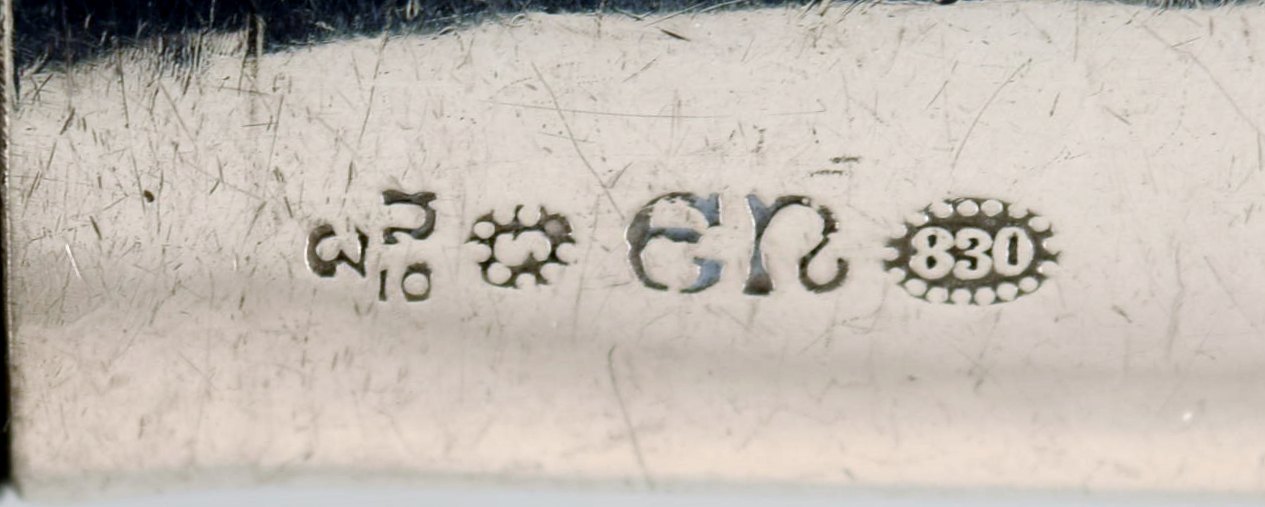 Evald Nielsen nummer 3, middagskniv i hammerslået sølv. 1920'erne.
