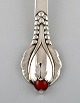 Evald Nielsen nummer 3, middagsske i hammerslået tretårnet sølv med cabochon sten. 1920'erne. Måler 19 cm. Stemplet. I perfekt stand.