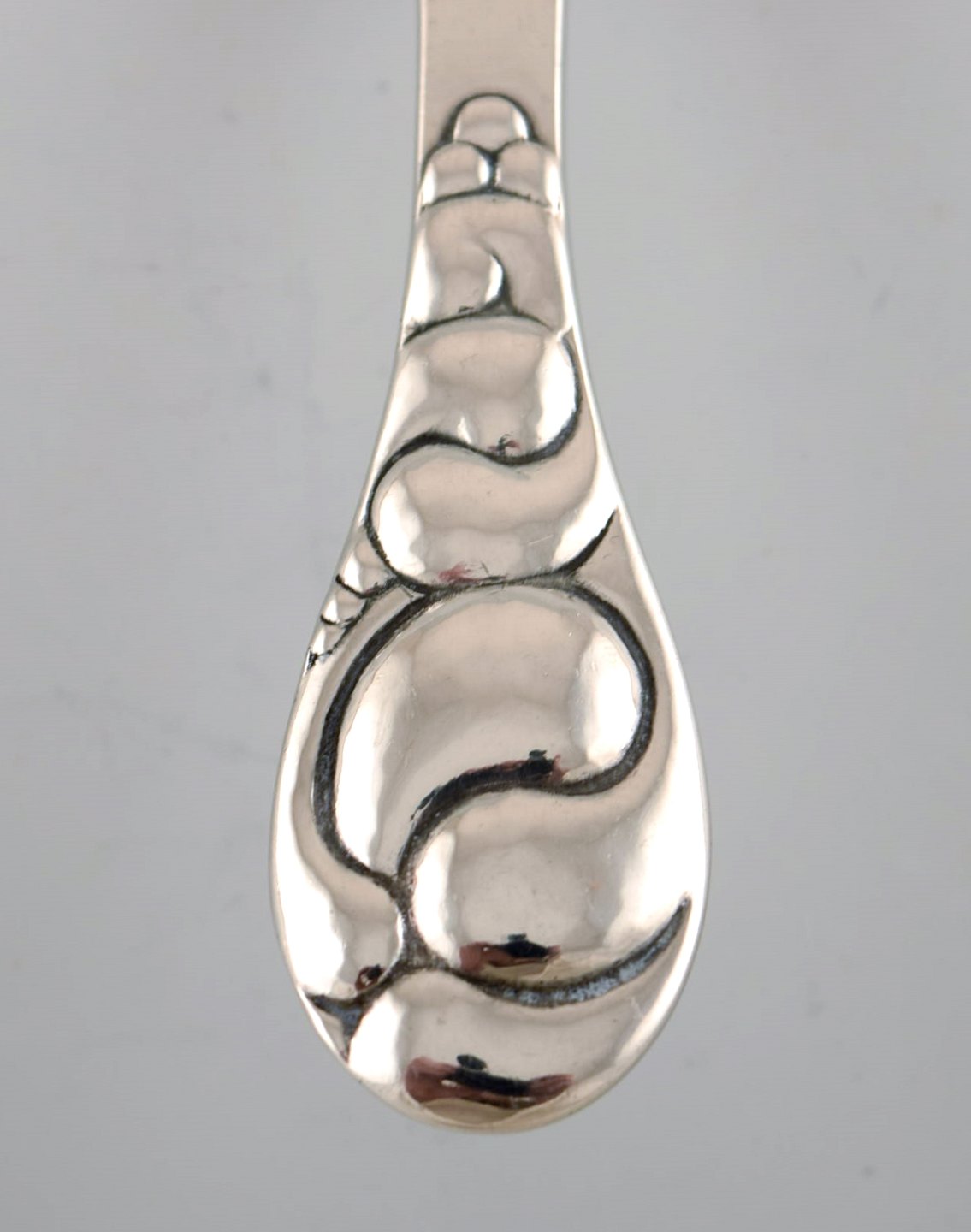 Evald Nielsen nummer 4, serveringsspade i helsølv. 1925. Måler 17,5 cm. Stemplet. I perfekt stand.