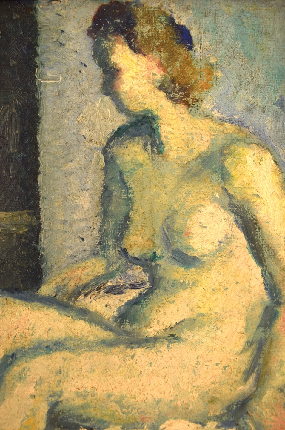 Albert Bertalan (f. 1899, d.1957), Ungarnsk/Fransk kunstner. Olie på lærred. Siddende nøgenmodel. 1940'erne.