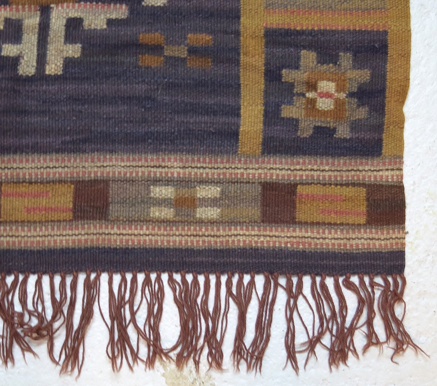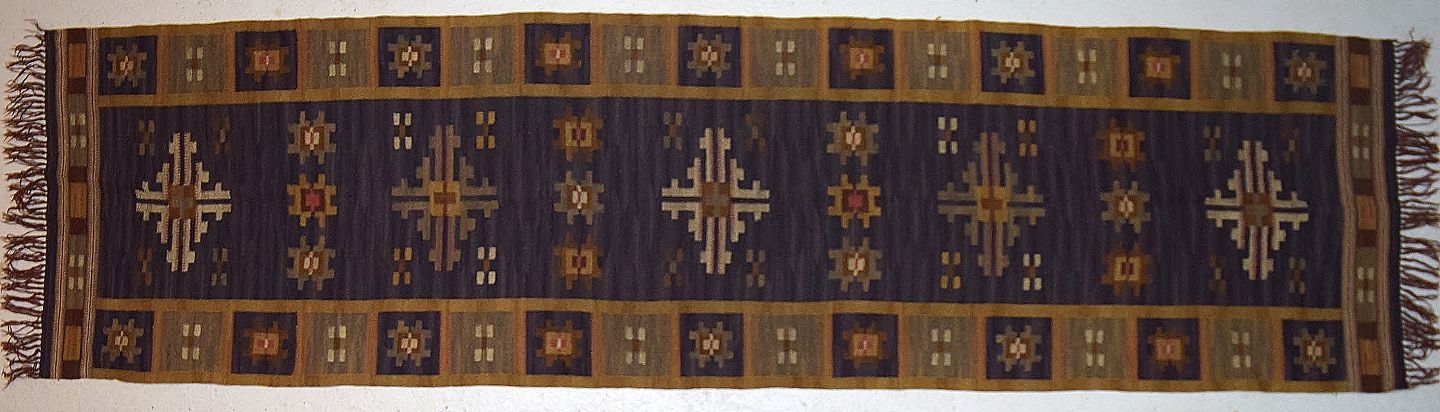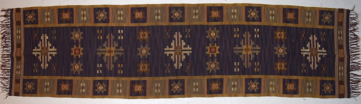 Stort, sjældent og tidligt håndvævet tæppe / løber af uld i "rölakan" teknik. Vi har to tæpper i samme design på lager.
