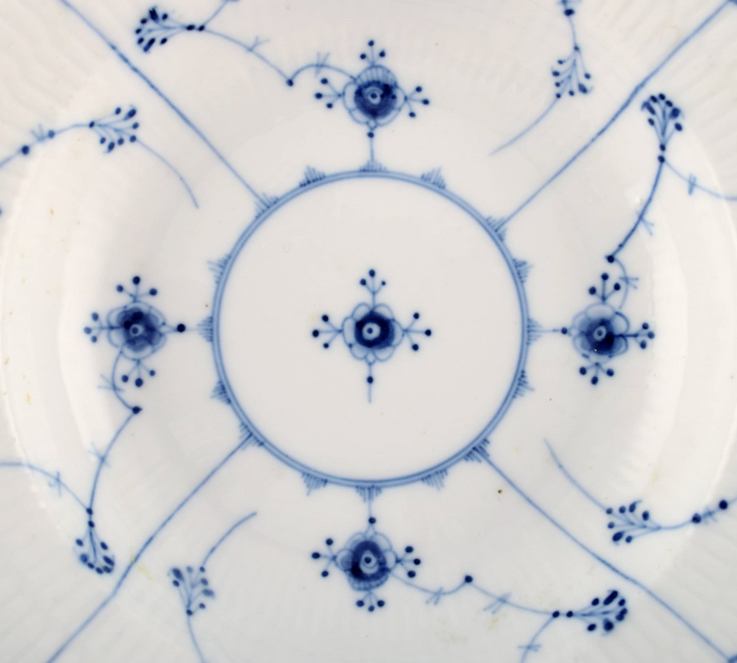 Tidlig og sjælden Royal Copenhagen Musselmalet dyb tallerken i museumskvalitet. Tidligt 1800-tallet. Tre stk på lager.