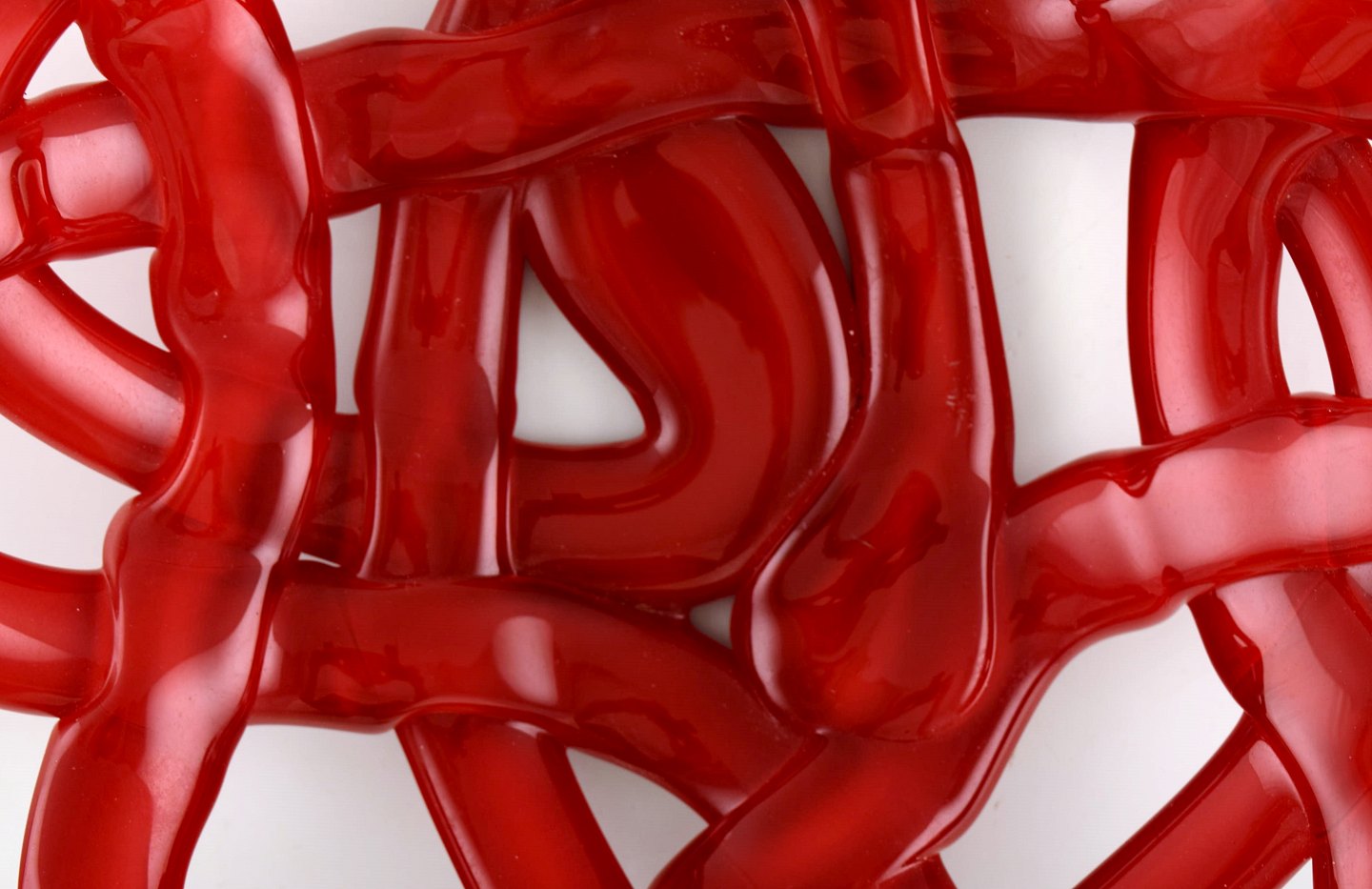 Anna Erhner for Kosta Boda. Stor skål "Basket" i rødt kunstglas. 21. århundrede. Måler: 30 cm x 8 cm. I perfekt stand. Mærkat.