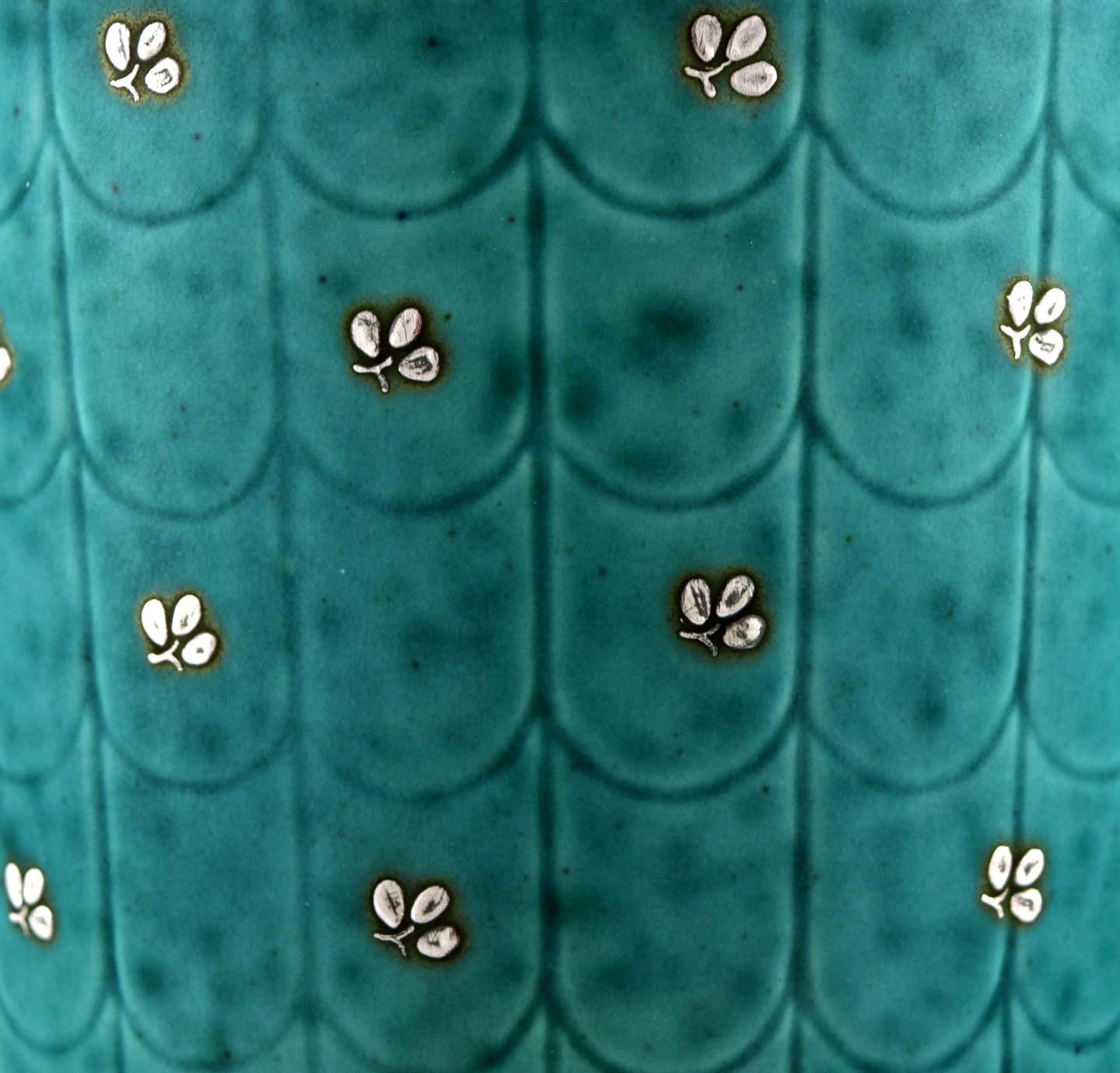 Wilhelm Kåge for Gustavsberg. Argenta vase i keramik dekoreret med blade i sølvindlæg. Sverige 1940´erne.