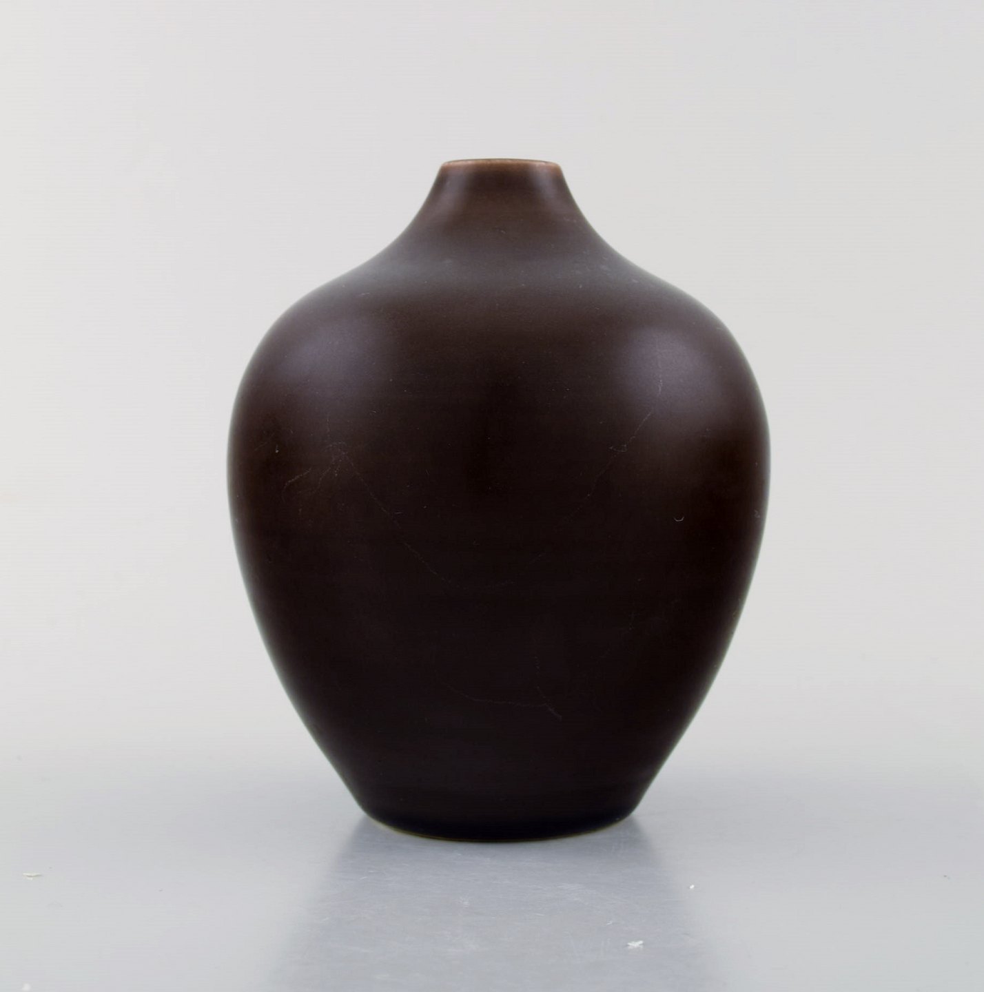 Triller Tobo, Sweden. Stylish unique vase in glazed ceramic. Beautiful glaze in brown shades. 1970's. Measures: 13 x 11 cm. In very good condition. Stamped.