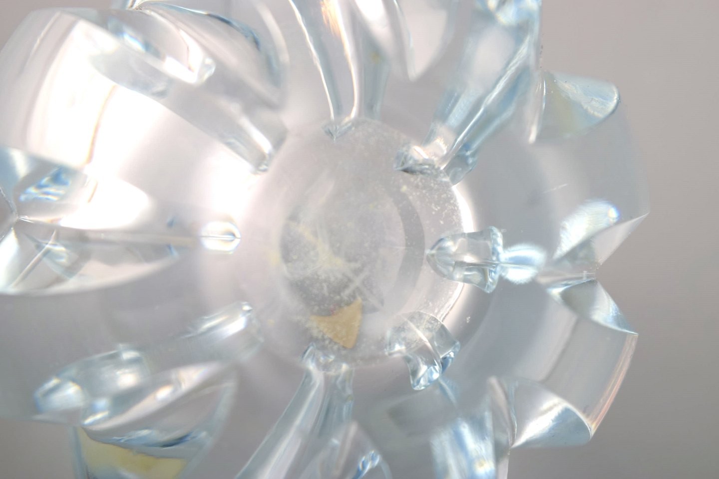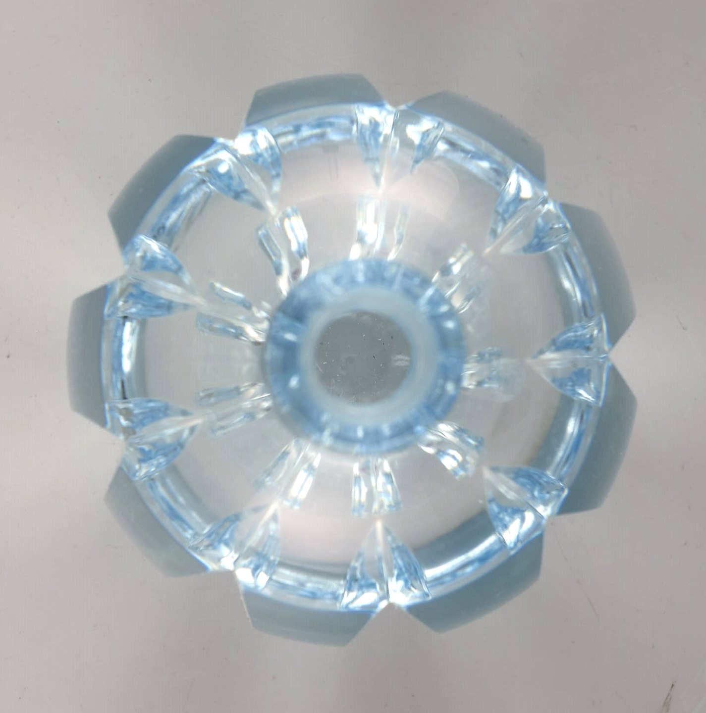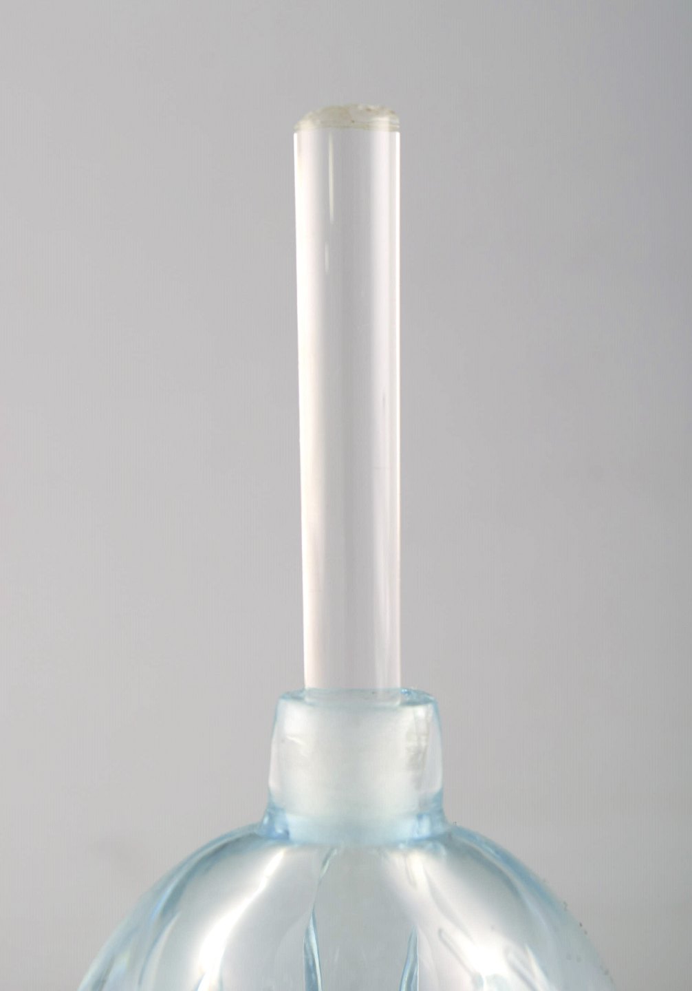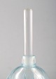 Edward Hald for Orrefors. En samling på seks mundblæste art deco flakoner i lyseblåt kunstglas. Designet i 1940'erne.