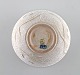 Axel Salto for Royal Copenhagen. Krakeleret / craquelé skål af glaseret stentøj. Hvid glasur. 1940'erne.