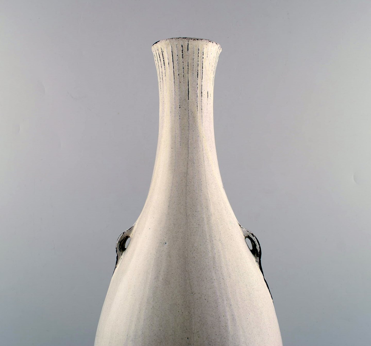 Svend Hammershøi for Kähler, Denmark. Large glazed stoneware vase. Beautiful black / gray double glaze. 1930 / 40's. In very good condition. Stamped. Measures: 47 x 20 cm.