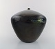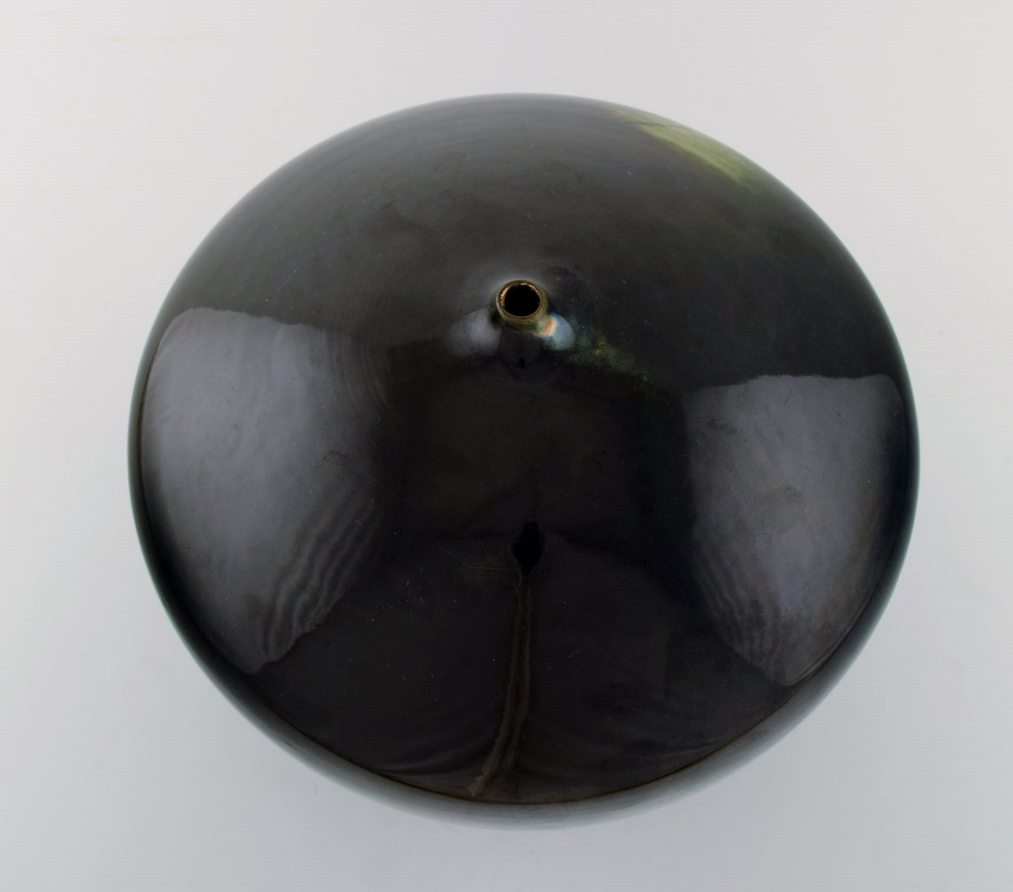 Pregolini Fiorella. Large Italian ceramic vase in beautiful metallic olive green glaze. Modernist shape, chubby corpus. Mid 20th century.