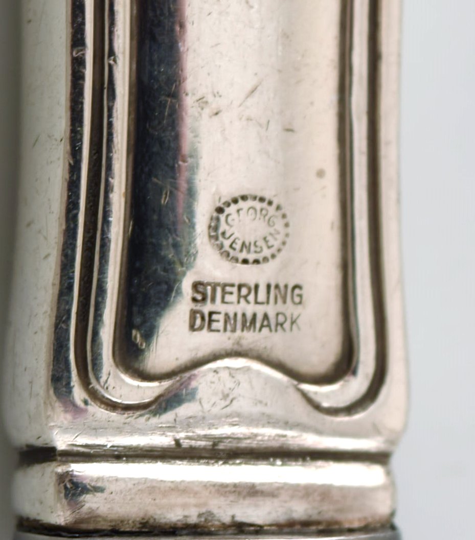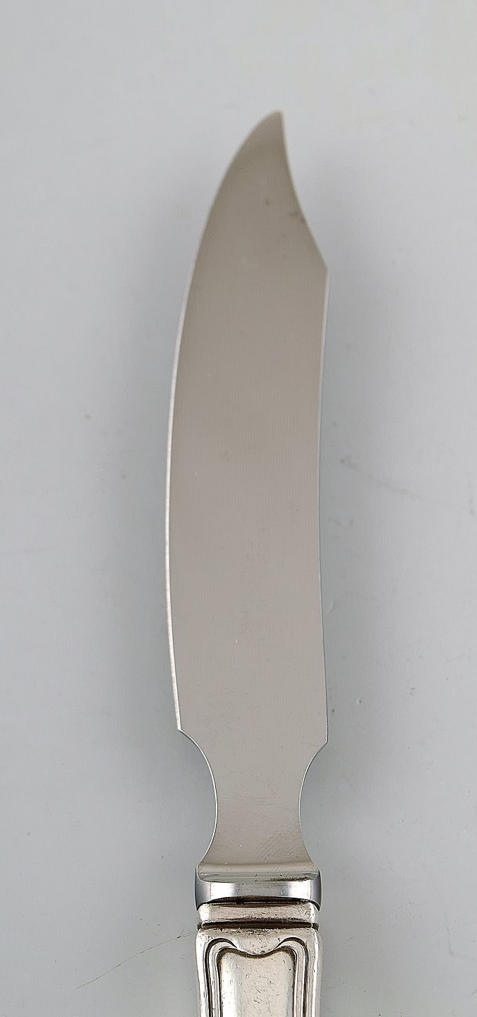 Sjælden Georg Jensen dobbeltriflet jagtkniv i sterlingsølv. I flot stand. Måler: 20 cm. Stemplet. Stort udvalg af Georg Jensen Dobbeltriflet på lager.